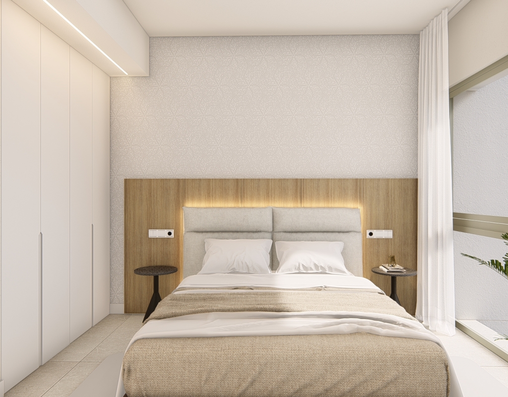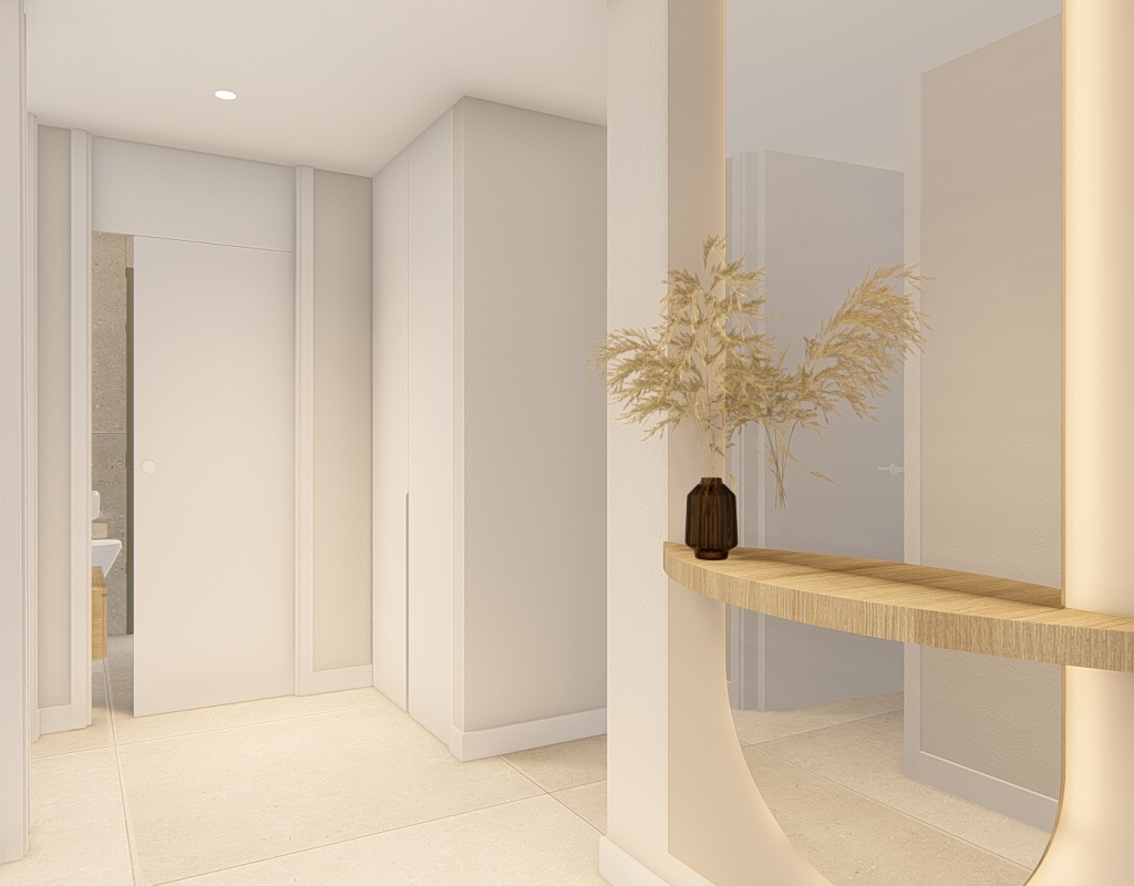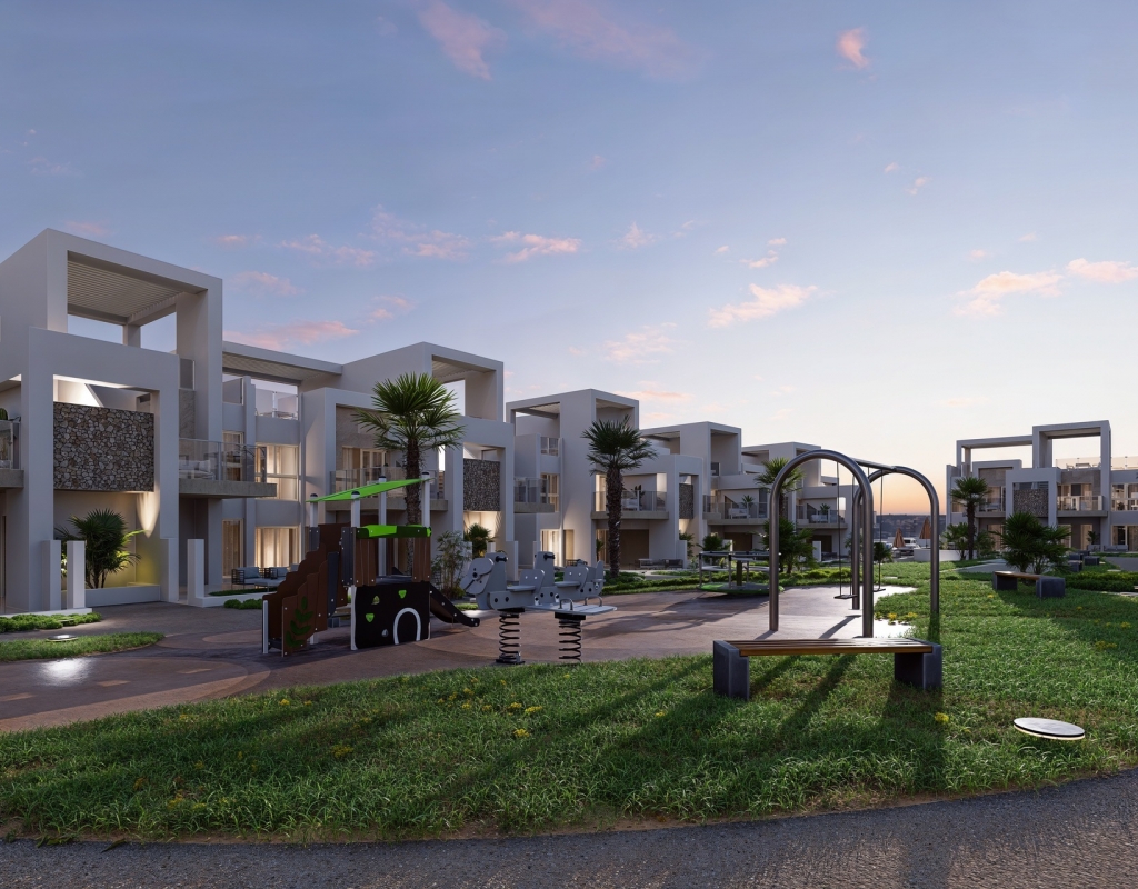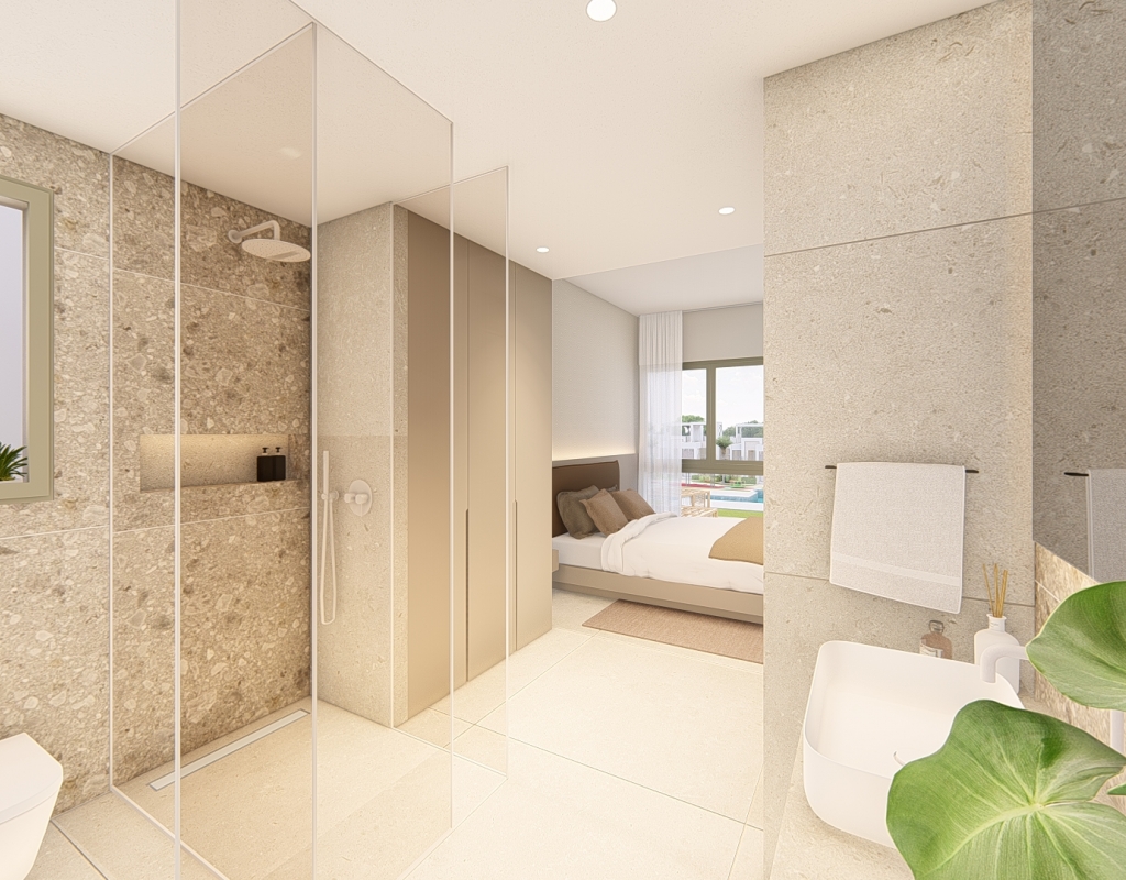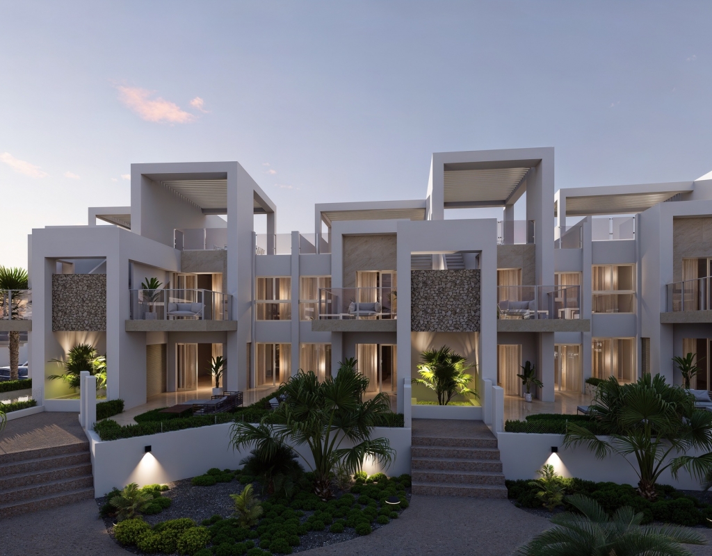 The homes feature outdoor spaces designed to maximize enjoyment of the Mediterranean climate. Each property includes a private garden, perfect for creating a personal oasis or a play area for children. Additionally, the spacious terraces offer an ideal place to relax outdoors, enjoy al fresco dining, or simply take in the surroundings. The presence of a solarium in each home adds an exclusive touch, allowing residents to enjoy panoramic views and sunshine year-round.