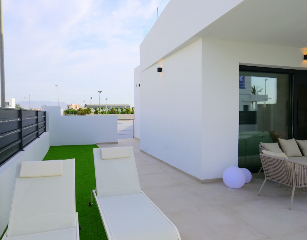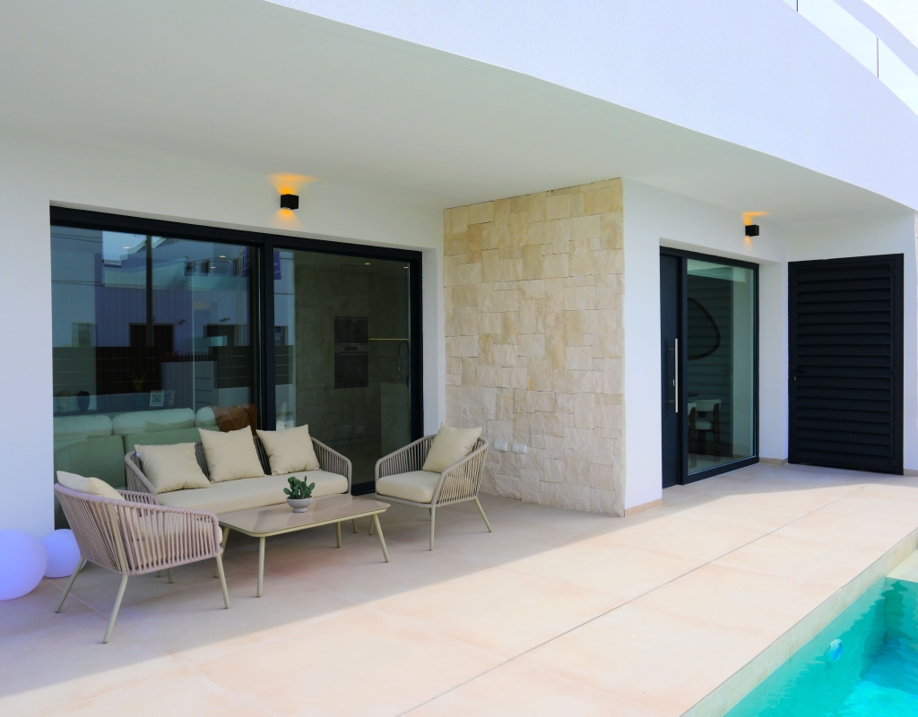 The properties feature outdoor spaces designed for enjoyment and relaxation. Each home has a private garden, ideal for creating a personal outdoor oasis. Additionally, the terraces offer extra space for entertainment or simply enjoying the Mediterranean climate. The inclusion of a private pool in each property adds a touch of luxury, allowing residents to refresh and relax in the comfort of their home. These outdoor elements are designed to complement the outdoor lifestyle characteristic of the region.