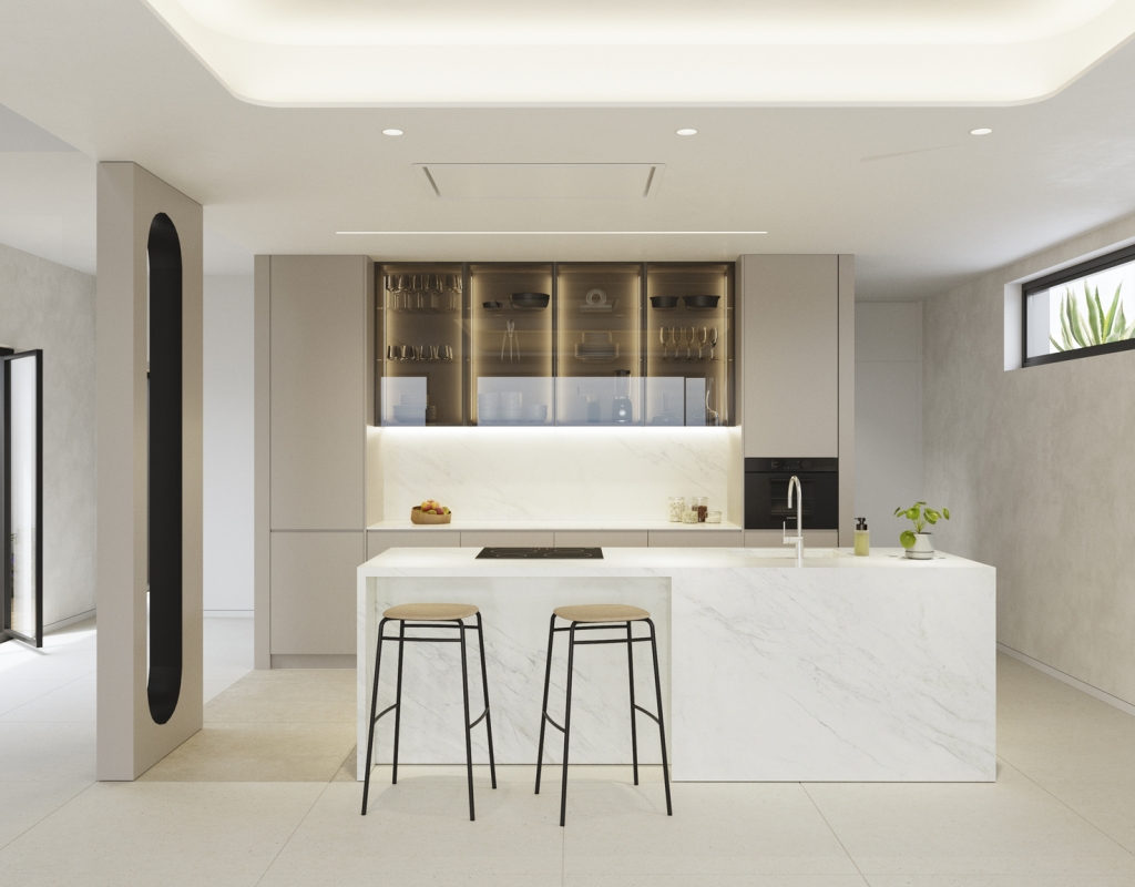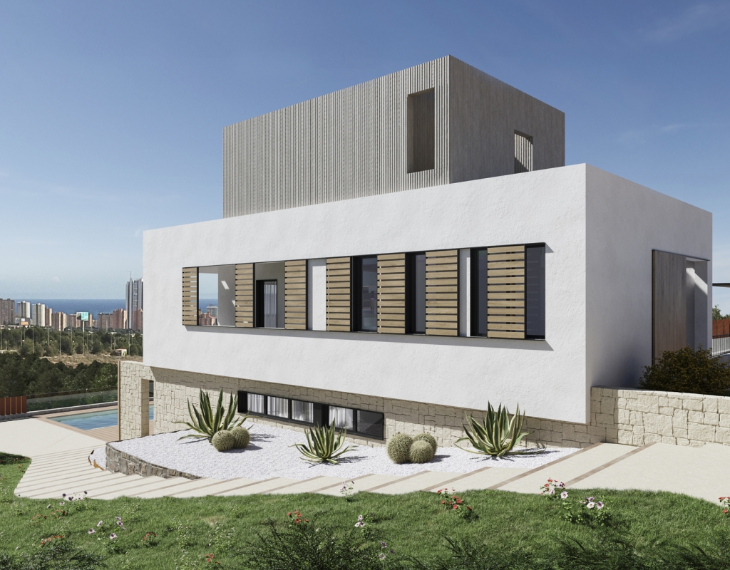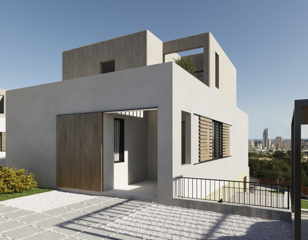 The exterior design of the villas in Finestrat is intended to maximize enjoyment of the natural surroundings. Each villa features a private garden, perfect for enjoying the outdoors and the Mediterranean climate. The spacious terraces offer an ideal space to relax and take in the stunning sea views. Additionally, the villas are equipped with pergolas that provide shade and an additional aesthetic touch to the outdoor space. The presence of a garage ensures convenience and security for residents' vehicles.