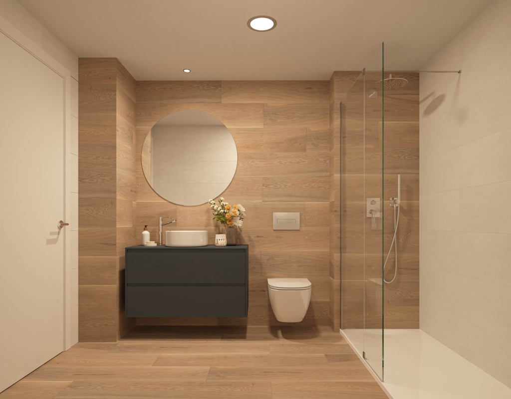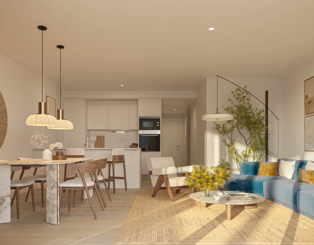The residences are equipped with high-quality features that ensure comfort and functionality. All properties include air conditioning, electric blinds, and modern appliances, ensuring a comfortable environment year-round. Built-in wardrobes offer efficient storage, while the interior design focuses on optimizing space and natural light. The layout includes 2 or 3 bedrooms and 2 bathrooms, adapting to the needs of each family. Additionally, each residence has a garage, providing extra convenience and security.