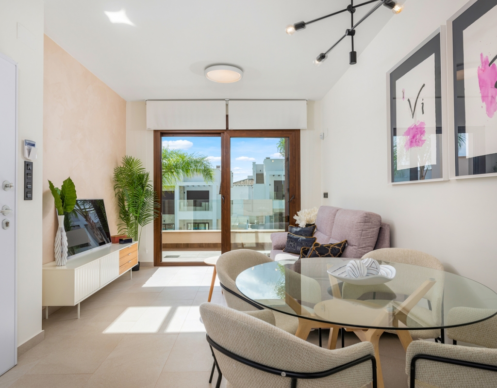 Located in the charming town of Torrevieja, this residential complex offers a selection of 42 properties including bungalows, high-bungalows, and low-bungalows. The location is ideal for those looking to enjoy life near the sea, as it is just 3.5 km from the coast. Additionally, the nearest airport is 21 km away, making access easy for frequent travelers. The homes are designed to offer comfort and functionality, with options of 2 and 3 bedrooms and 2 bathrooms, catering to different family needs.