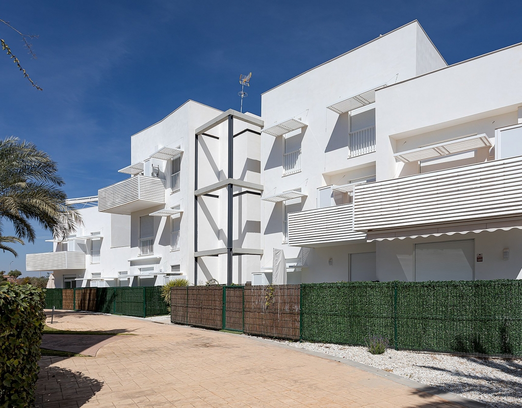 The exteriors of this residential in Vera are designed to offer a pleasant and functional environment. The homes feature private terraces and gardens, ideal for enjoying the Mediterranean climate and hosting outdoor gatherings. Additionally, some typologies include a solarium, providing extra space to relax and enjoy the views. The presence of electric shutters ensures convenience and ease of use, while the video intercom system adds an extra level of security and peace of mind for residents.