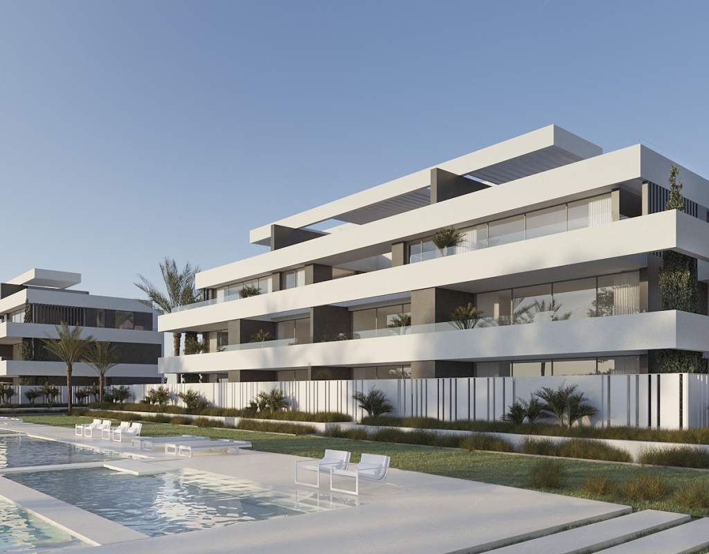 The exteriors of these homes are designed to maximize enjoyment of the Mediterranean climate. Each property features private terraces, perfect for outdoor relaxation or al fresco dining. Additionally, some units offer solariums, providing extra space for leisure and relaxation. The inclusion of pergolas adds a touch of elegance and functionality, allowing enjoyment of the outdoor space with shade and style. The homes are equipped with jacuzzis, offering an additional luxury for relaxation and personal well-being.