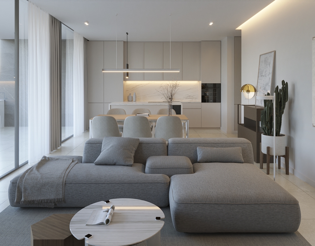 The interiors of these homes are carefully designed to offer comfort and modernity. Apartments, ground floors, and penthouses are available in 2 and 3-bedroom configurations, all with 2 bathrooms. The kitchens are fully equipped with modern appliances, and the homes come furnished, ready to move in. The climate control system includes air conditioning and underfloor heating, ensuring comfort throughout the year. Ceramic and porcelain tile floors add a touch of sophistication and are easy to maintain. Electric shutters and a video intercom add an extra level of convenience and security.