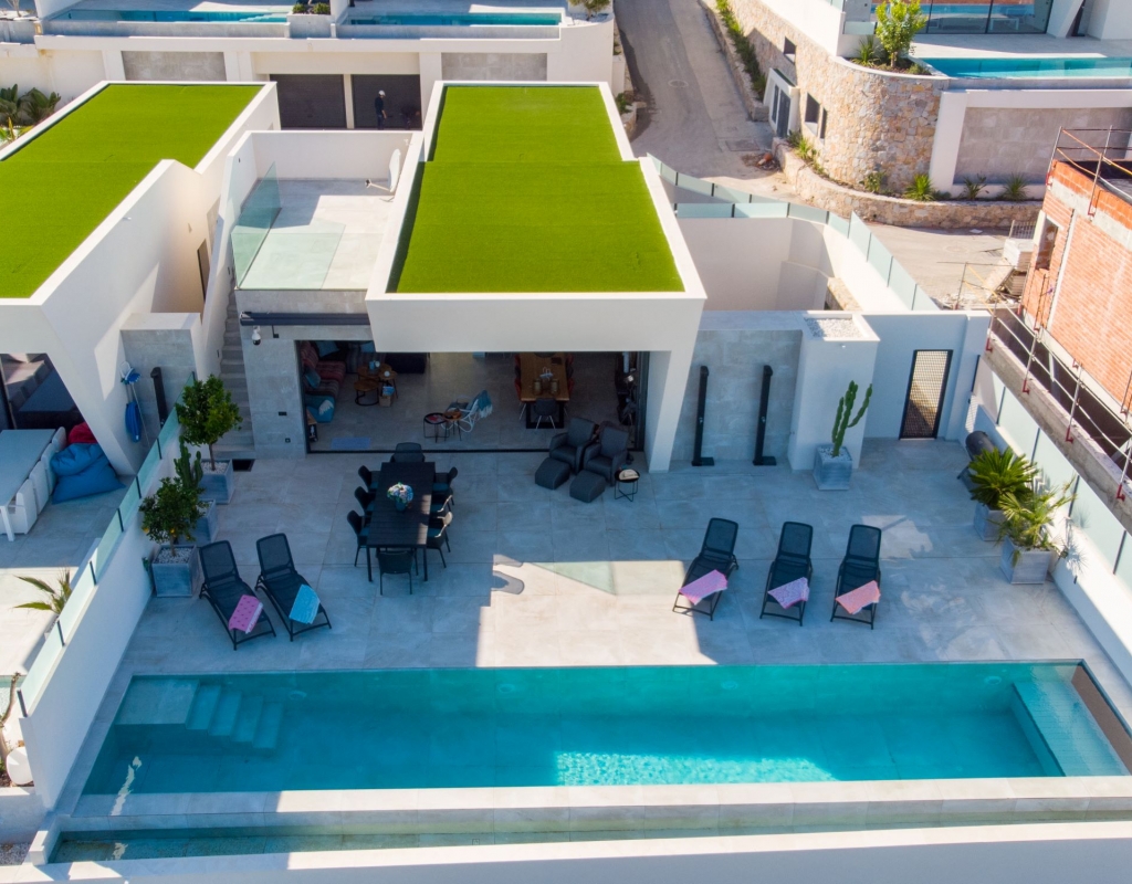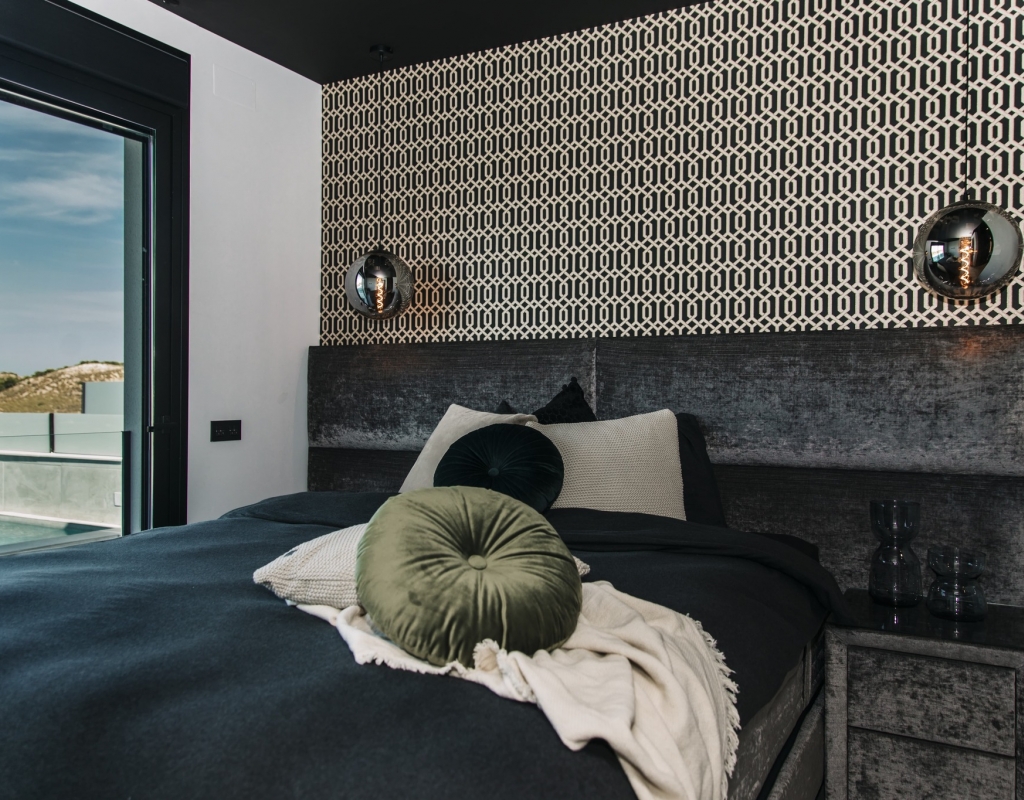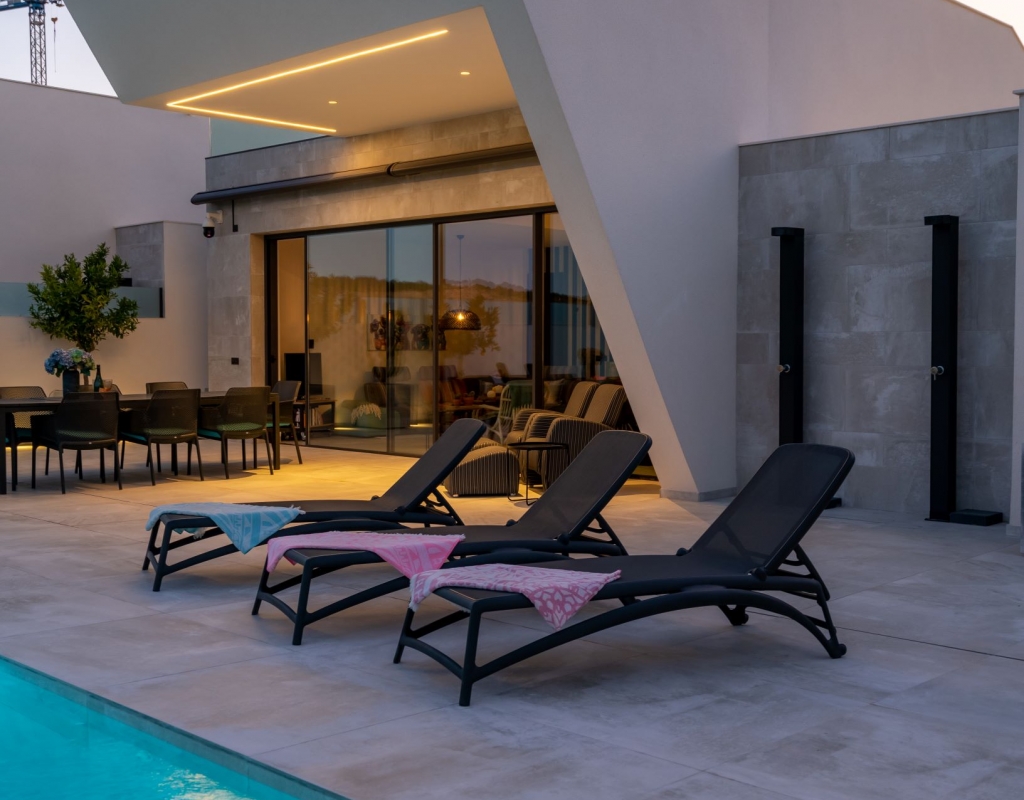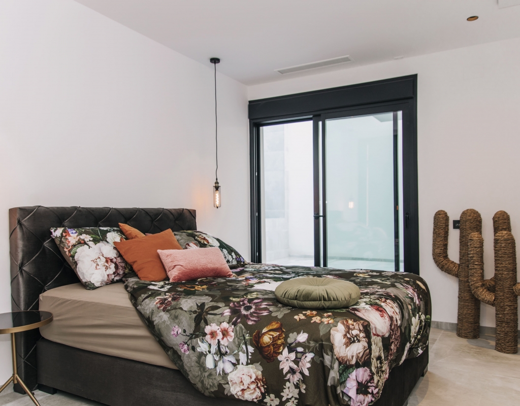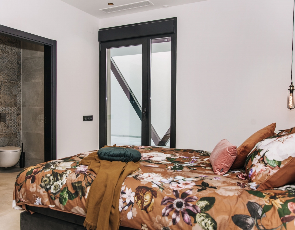 The interior of these villas in Rojales is designed to offer maximum comfort and functionality. Layout options include villas with 3, 4, or up to 6 bedrooms, adapting to the needs of different families. The bathrooms, ranging from 3 to 5 depending on the type, are equipped to offer comfort and style. The interior spaces are designed to make the most of natural light, creating a warm and welcoming atmosphere. The arrangement of the rooms and common areas is designed to offer a smooth and comfortable living experience, with quality finishes that complement the modern design of the villas.