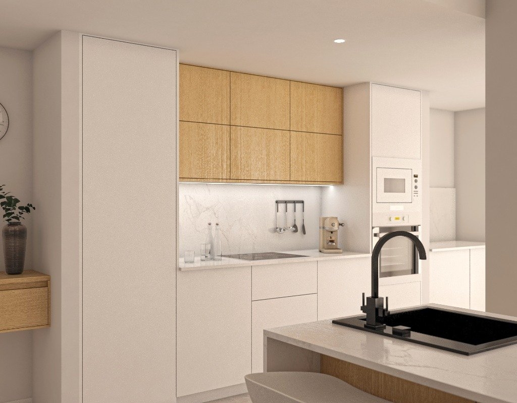 The exteriors of these homes are designed to offer maximum enjoyment of the Mediterranean climate. Each property includes a terrace, ideal for outdoor relaxation or enjoying a meal with sea views. Additionally, some types feature a private solarium, perfect for sunbathing in complete privacy. The presence of a pergola provides shade and style, creating a welcoming space for relaxation. The jacuzzi is another attraction, offering a place to unwind and disconnect after a busy day. The combination of these outdoor elements ensures that each resident can fully enjoy their surroundings.