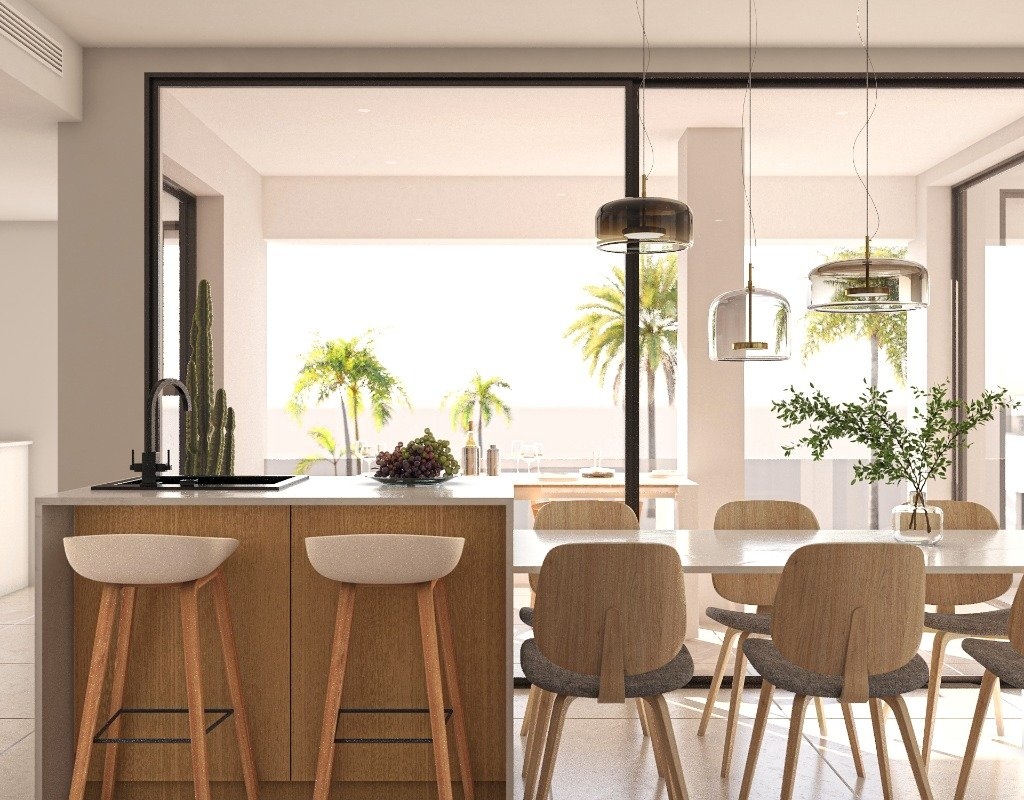 The interior of these homes is designed to offer comfort and functionality. Distribution options include homes with 2 and 3 bedrooms, all with 2 bathrooms, providing flexibility for different family needs. The inclusion of modern appliances facilitates daily life, while built-in wardrobes optimize storage space. The ceramic flooring is not only aesthetically pleasing but also easy to maintain, making it a practical choice for everyday living. Every detail of the interior is designed to offer a welcoming and modern environment, ideal for enjoying life in San Pedro del Pinatar.