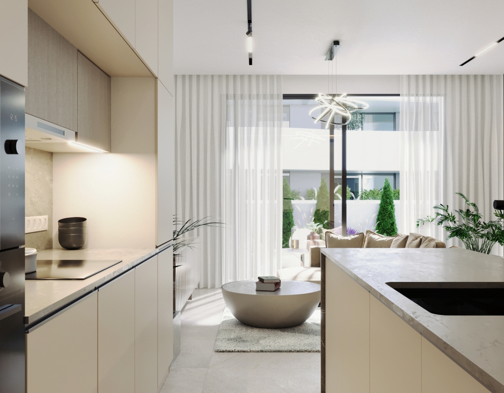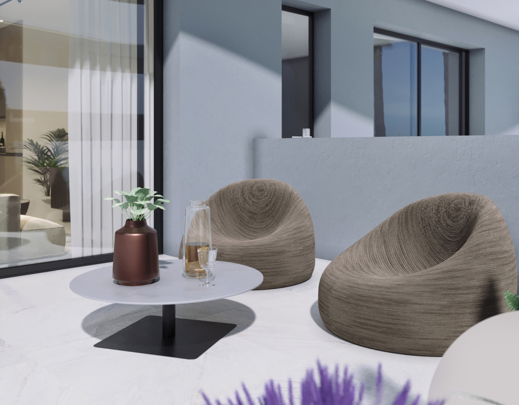 The interior of the townhouses is designed to offer comfort and functionality. With three bedrooms and two bathrooms, each property is designed to maximize space and comfort. Porcelain tile floors add a touch of elegance and are easy to maintain. The inclusion of home automation allows for efficient control of home functions, enhancing security and energy efficiency. Built-in wardrobes in the bedrooms offer practical and discreet storage. Additionally, each townhouse features a solarium, a perfect space to relax and enjoy the views.