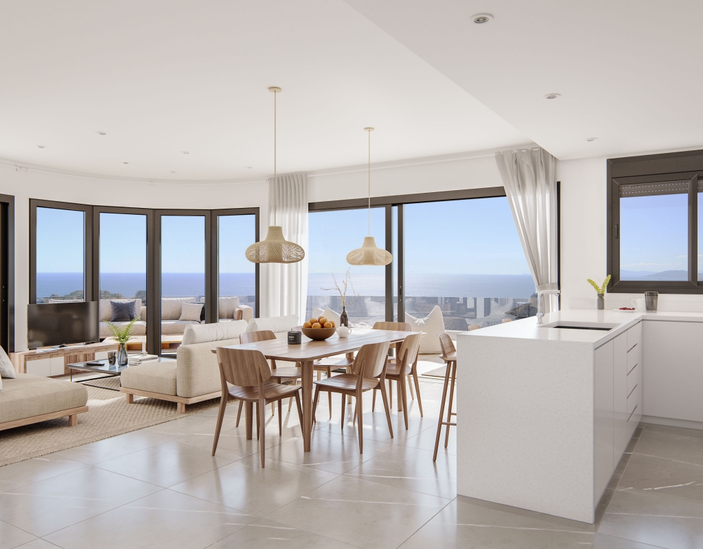 The outdoor spaces of this residential in Águilas are designed to complement the natural surroundings and offer an outdoor lifestyle. The properties feature private terraces, perfect for enjoying the Mediterranean climate and sea views. Additionally, some typologies include solariums, providing extra space for relaxation and entertainment. Access to a communal garage ensures convenience and security for vehicles, including charging stations for electric cars, reflecting a commitment to sustainability and innovation.