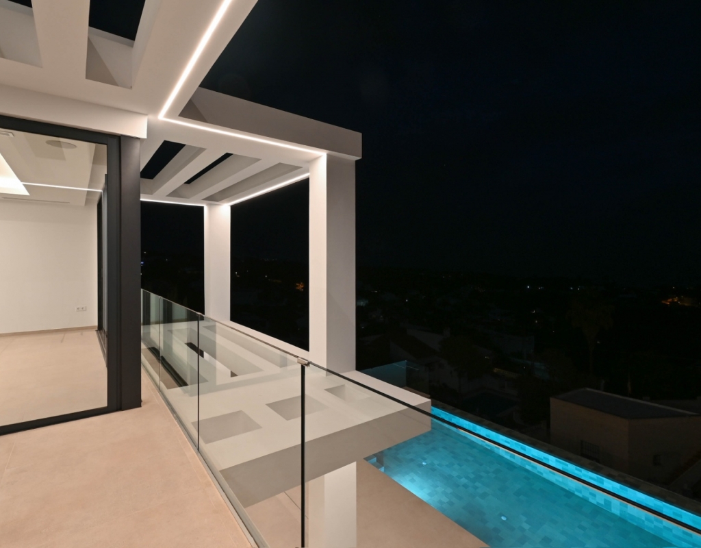 Inside, the villa is equipped with high-end home appliances and built-in wardrobes for added convenience and style. Underfloor heating ensures year-round comfort, while a pergola adds an elegant touch to the outdoor space, perfect for alfresco dining or simply unwinding with a good book.