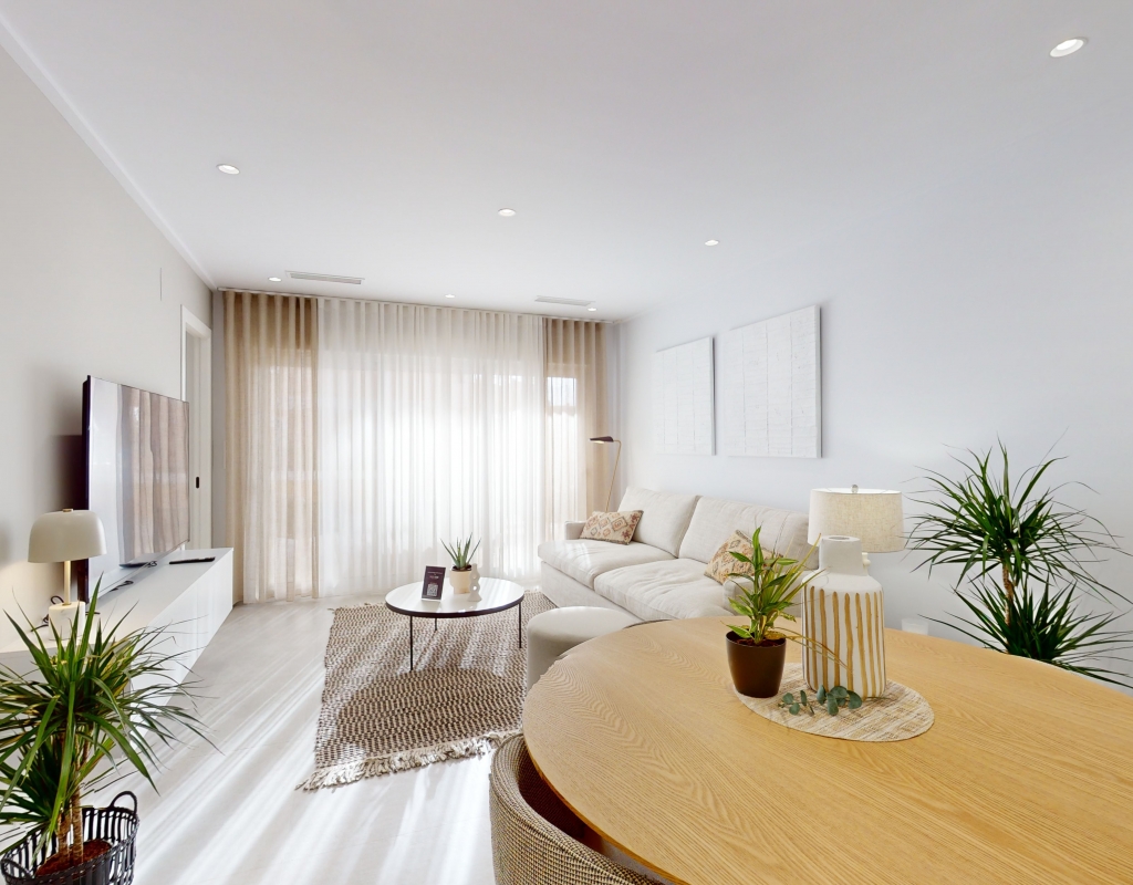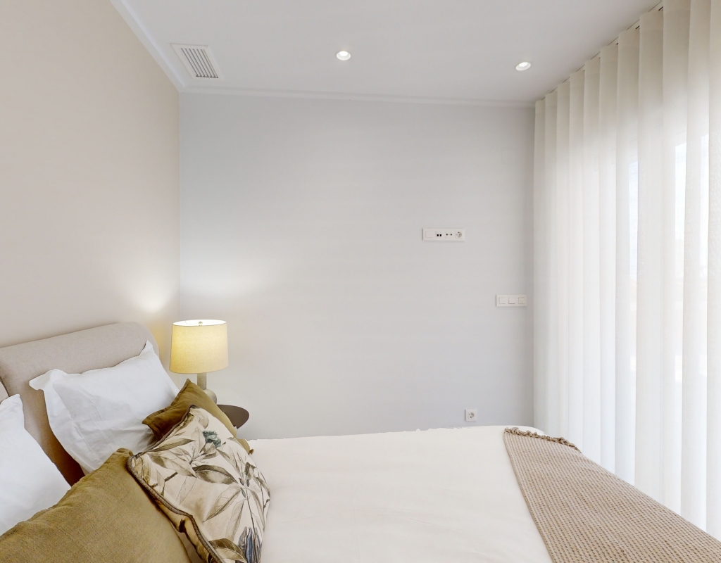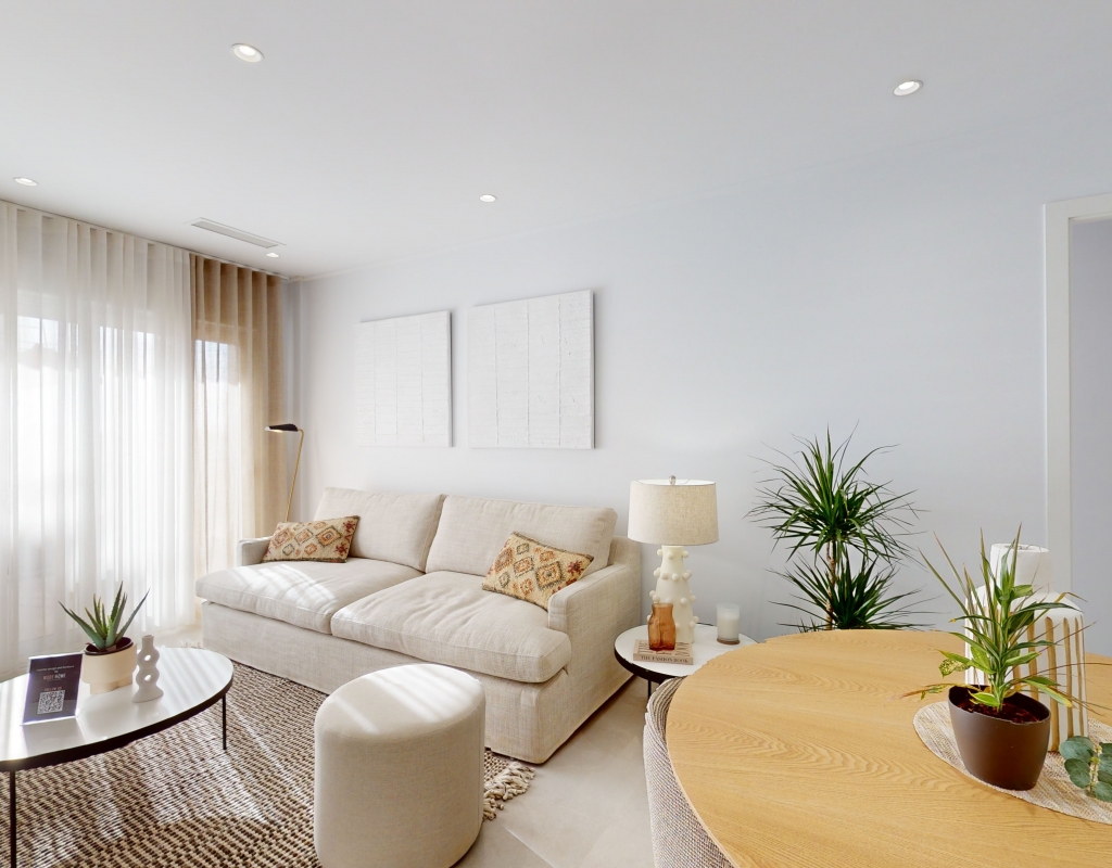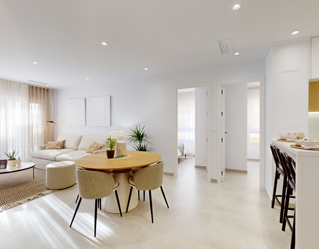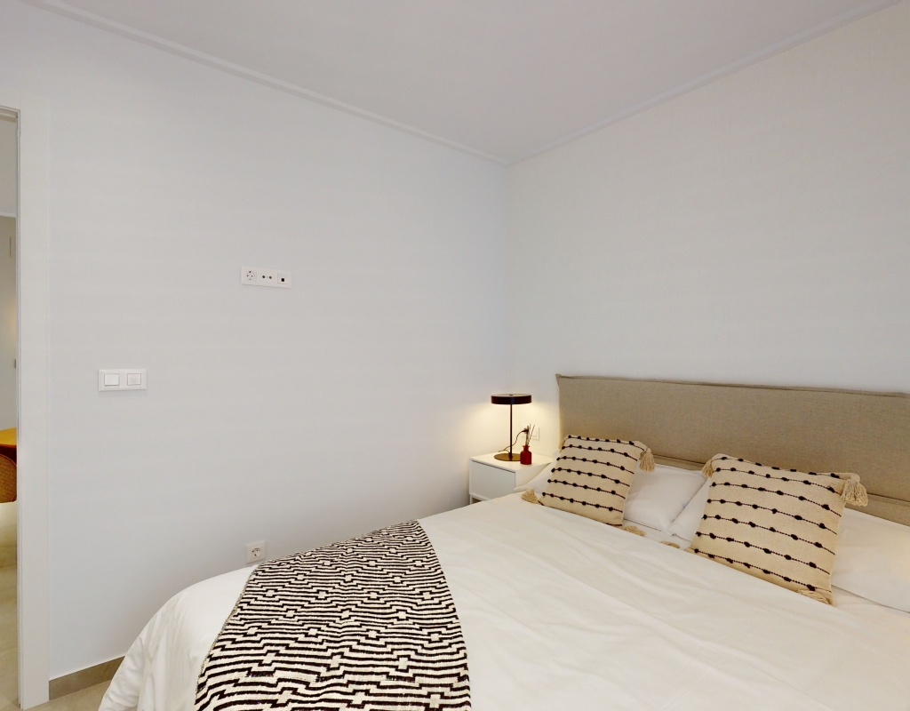 The properties feature outdoor spaces designed to enjoy the Mediterranean climate. Each home has a private garden, ideal for relaxation or outdoor activities. The terraces offer additional space to enjoy the sea views, creating a perfect setting for outdoor dining or simply relaxing at the end of the day. The penthouses also include a solarium, providing an exclusive space for sunbathing in complete privacy. These outdoor elements not only expand the living space but also enhance the quality of life by offering constant contact with nature.