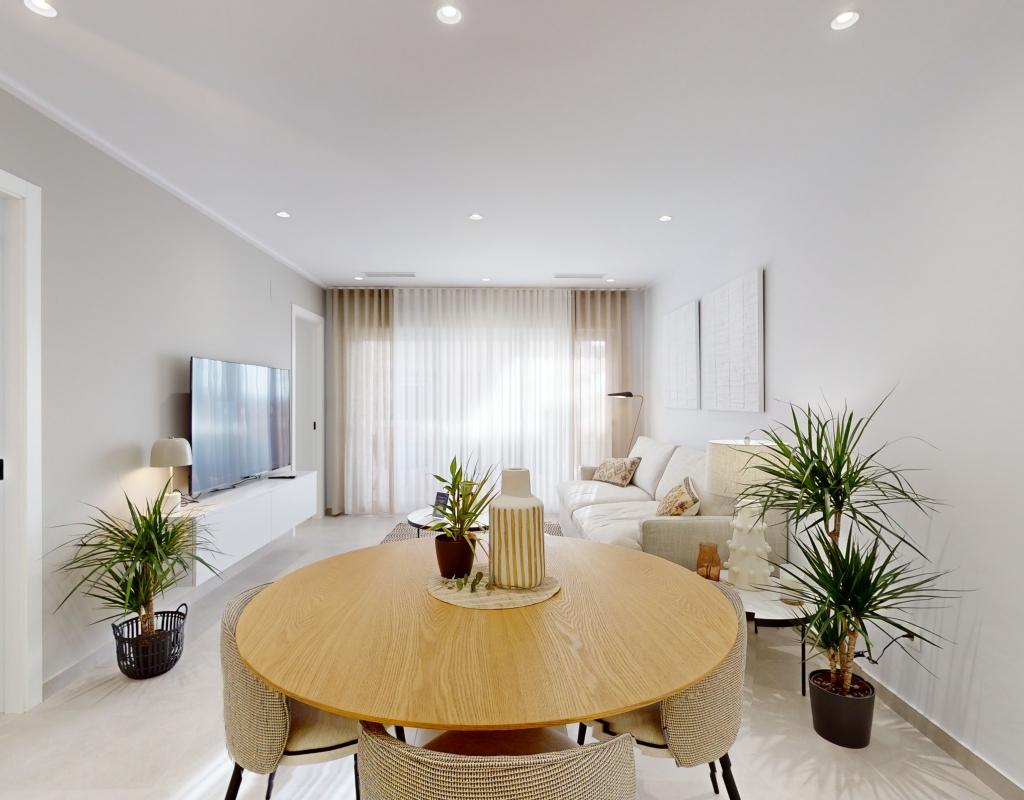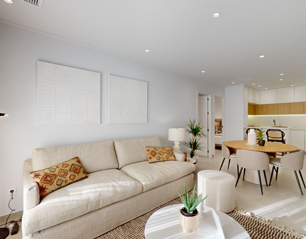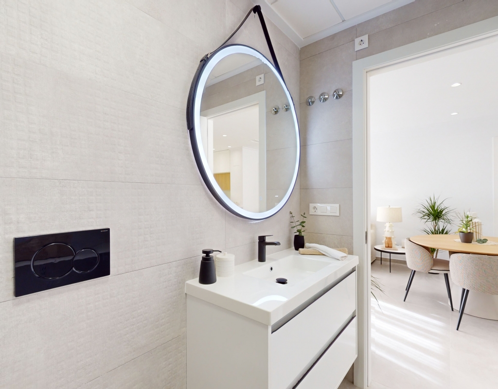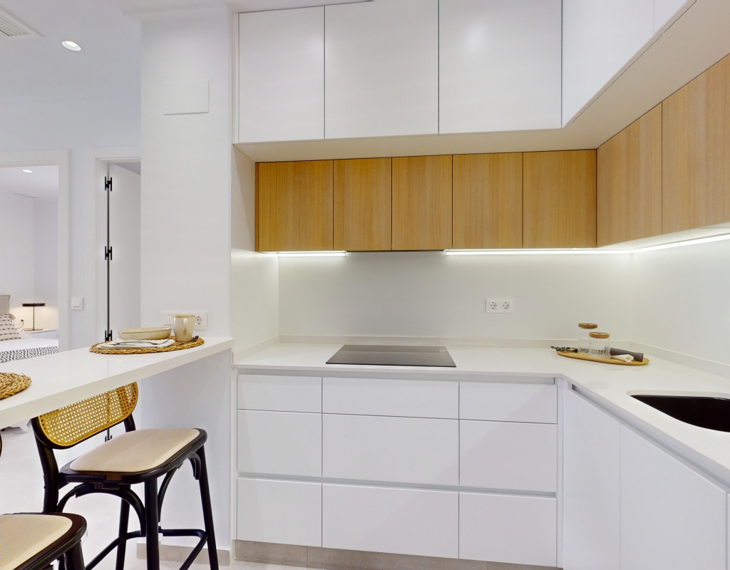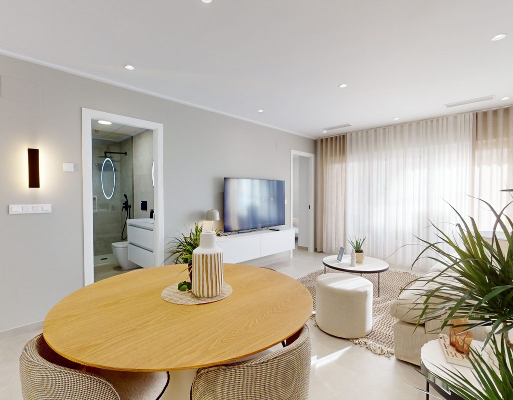 The properties feature outdoor spaces designed to enjoy the Mediterranean climate. Each home has a private garden, ideal for relaxation or outdoor activities. The terraces offer additional space to enjoy the sea views, creating a perfect setting for outdoor dining or simply relaxing at the end of the day. The penthouses also include a solarium, providing an exclusive space for sunbathing in complete privacy. These outdoor elements not only expand the living space but also enhance the quality of life by offering constant contact with nature.