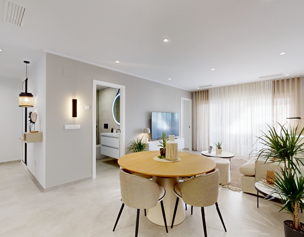 The interiors of the homes are designed to offer maximum comfort and functionality. Each property is fully furnished, allowing for a hassle-free move. Appliances are included, making daily life easier from day one. Built-in wardrobes provide ample storage space, maintaining order and organization. Additionally, the pre-installation of air conditioning ensures a pleasant environment year-round, adapting to the needs of each season. With three bedrooms and two bathrooms, these homes are designed to offer a comfortable and welcoming space for the whole family.
