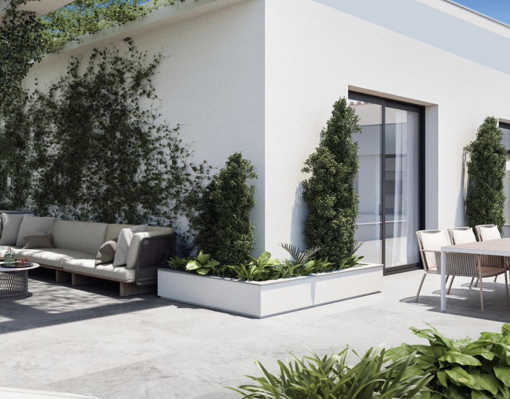 The exteriors of these properties in Torrevieja are designed to complement the natural surroundings and offer a relaxing outdoor space. The terraces, present in all units, provide a perfect space to enjoy the sea views and the Mediterranean climate. The proximity to the sea, just 450 meters away, allows residents to enjoy morning walks on the beach or water activities. The modern and elegant architecture of the properties blends seamlessly with the landscape, offering a welcoming and sophisticated environment. Additionally, the strategic location allows easy access to local amenities, making daily life comfortable and pleasant. The combination of panoramic views and proximity to the sea makes these properties an ideal choice for those who value contact with nature and the outdoors.