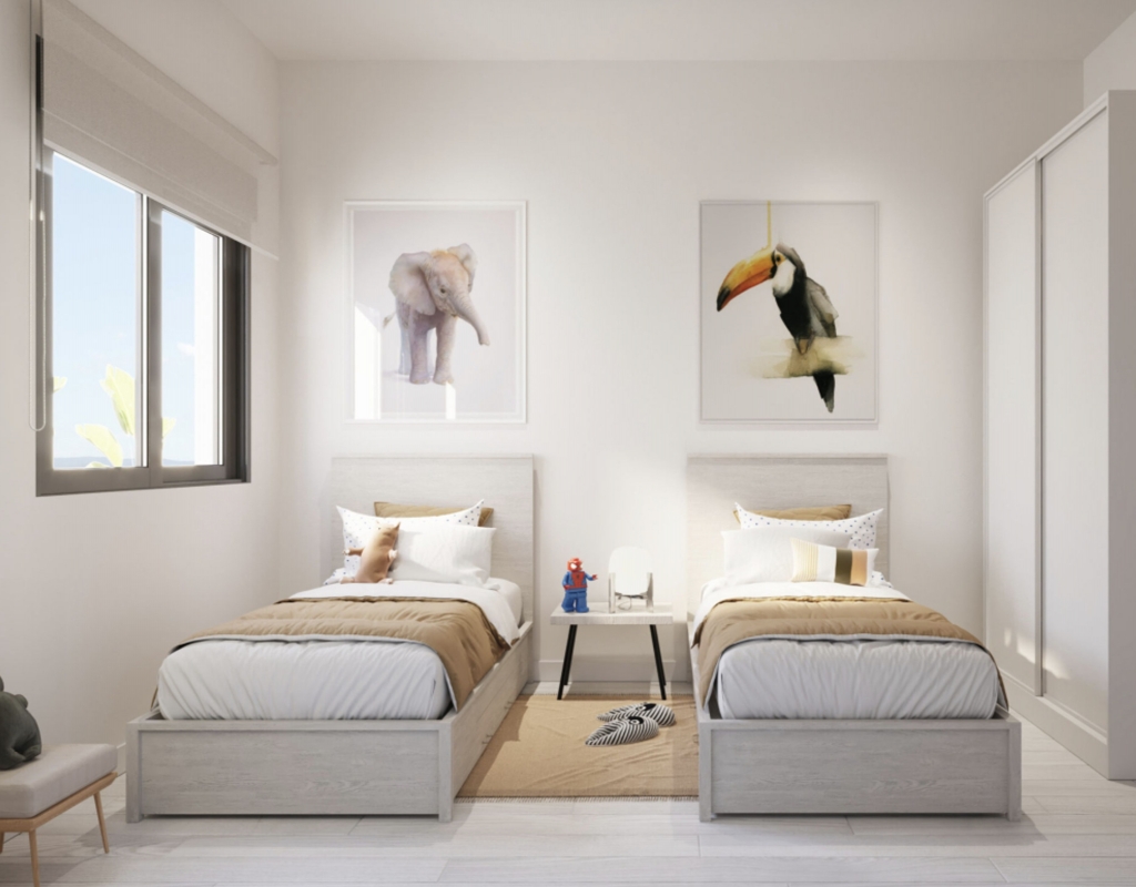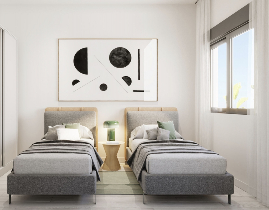 The interior of these properties in Torrevieja is designed to offer maximum comfort and functionality. The apartments, ground floors, and penthouses are available in configurations of 1, 2, and 3 bedrooms, with options of 1 or 2 bathrooms, adapting to the needs of different lifestyles. The porcelain tile floors add a touch of elegance and are easy to maintain, while the built-in wardrobes offer efficient and discreet storage. The inclusion of video intercoms ensures an additional level of security and convenience for residents. The properties are designed to make the most of natural light, creating bright and welcoming spaces. The intelligent layout of the interior spaces ensures that every square meter is optimized for comfort and functionality, making these homes an ideal place to live.