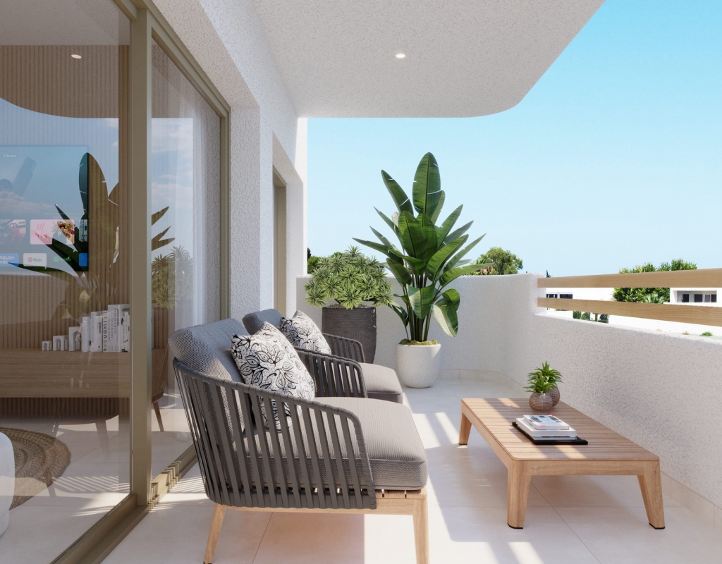 The exteriors of these properties have been designed to offer a space for relaxation and outdoor enjoyment. Each bungalow features a private garden, perfect for creating a personal oasis or an outdoor entertainment area. The spacious terraces allow for enjoyment of the Mediterranean climate year-round, while the solariums offer an ideal place for sunbathing in complete privacy. Additionally, the properties feature pergolas that provide shade and style, seamlessly integrating with the natural surroundings. The proximity to the sea, just 1 km away, adds extra value, allowing for coastal walks and water activities.