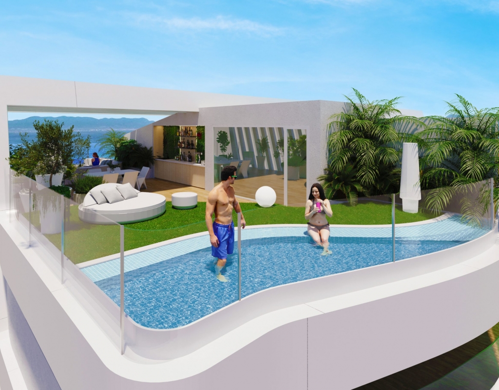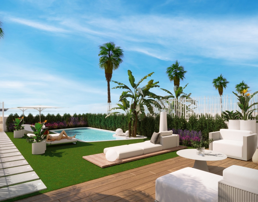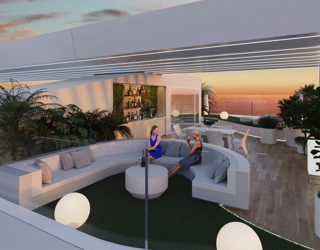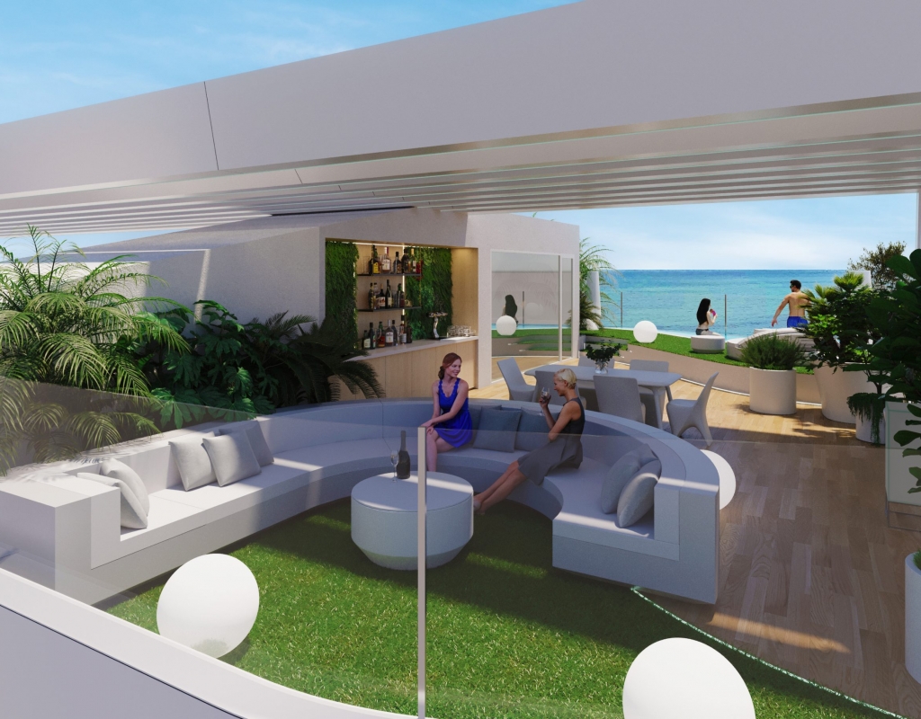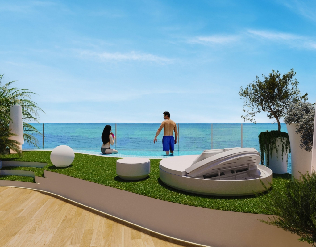 The exteriors of this residential are designed to maximize enjoyment of the natural surroundings. Each property features a private garden, ideal for outdoor relaxation. Spacious terraces offer additional space to enjoy sea views and the Mediterranean climate. Additionally, some types include a solarium, providing an exclusive space for sunbathing or enjoying moments of tranquility. The beachfront location ensures residents can enjoy the sea breeze and uninterrupted views of the horizon.