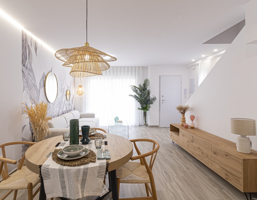 The townhouses feature outdoor spaces designed for enjoyment and relaxation. Each home has a private garden, ideal for creating a personal outdoor oasis. Additionally, the spacious terraces allow for enjoying sea views and the Mediterranean climate year-round. For those seeking additional outdoor space, the solariums offer a perfect spot for sunbathing or enjoying a sunset dinner. The community also offers a shared solarium, providing additional space for socializing and enjoying the surroundings.