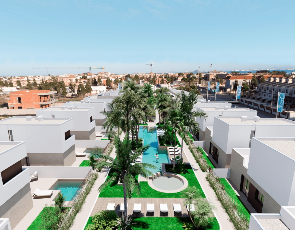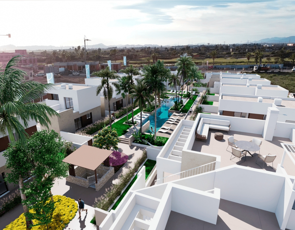 Located in the charming town of Los Alcázares, this residential complex offers a selection of 16 properties designed to meet the needs of those seeking a home in a privileged environment. The housing typology includes options such as detached villas, high-bungalows, and low-bungalows, adapting to different lifestyles and preferences. Proximity to the sea, just 1 km away, allows for enjoying the sea breeze and pleasant walks along the coast. Additionally, the airport is 45 km away, facilitating access for frequent travelers. These features make this residential an attractive option for those who value comfort and strategic location.
