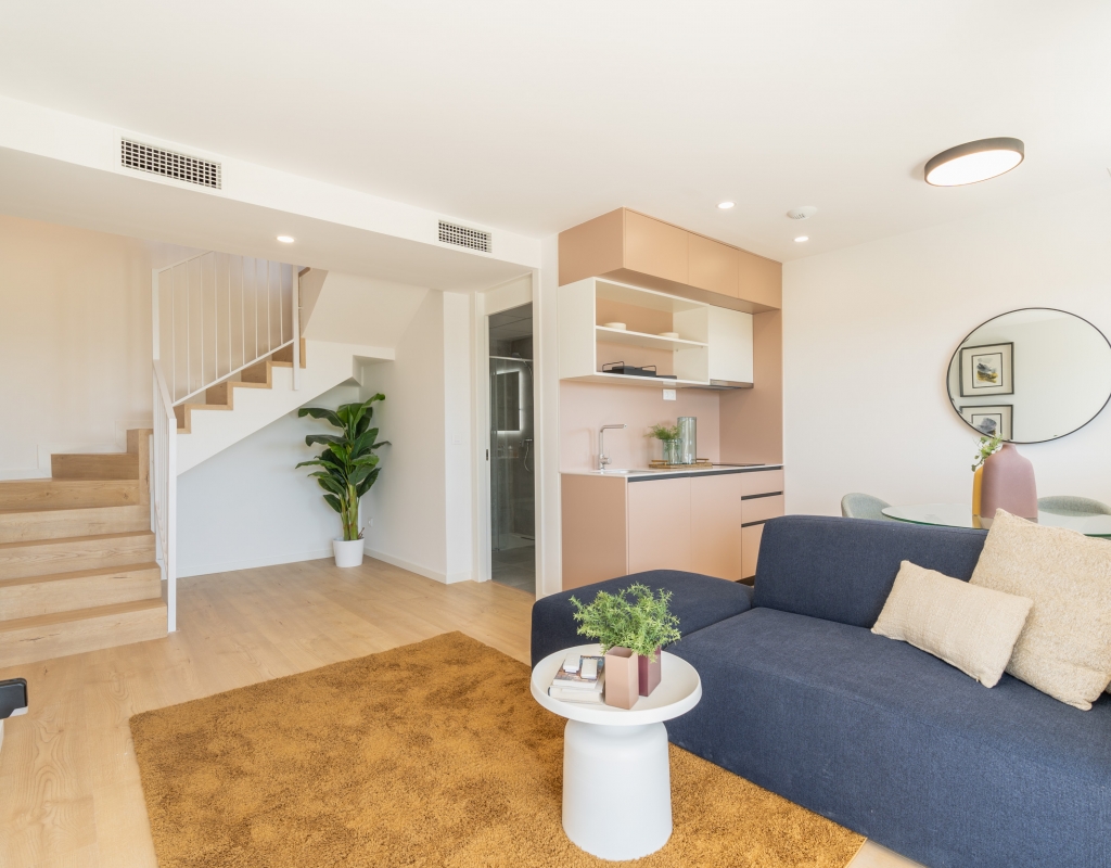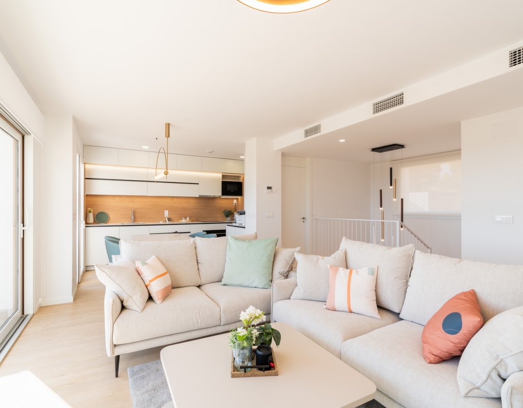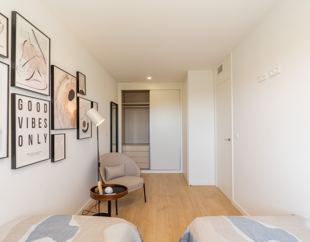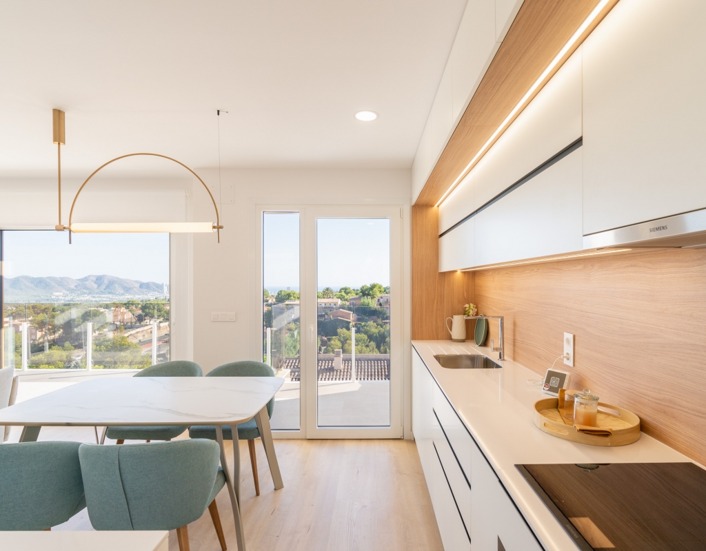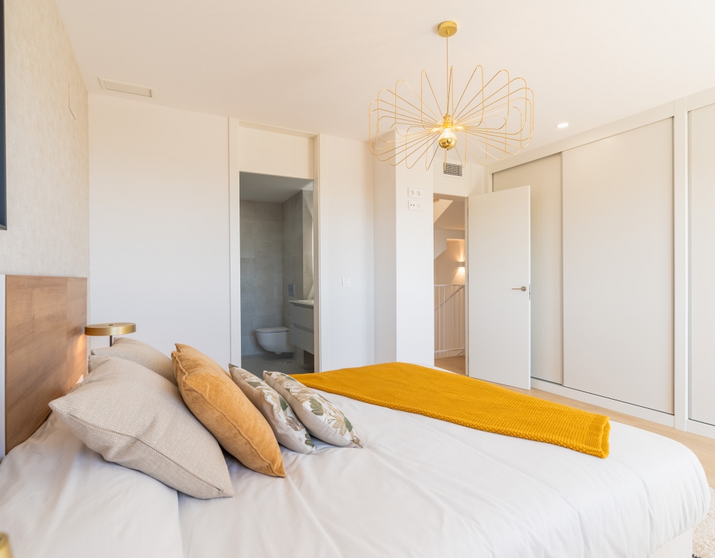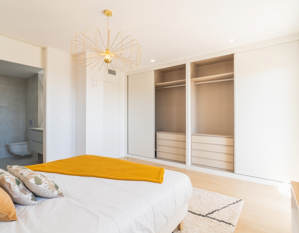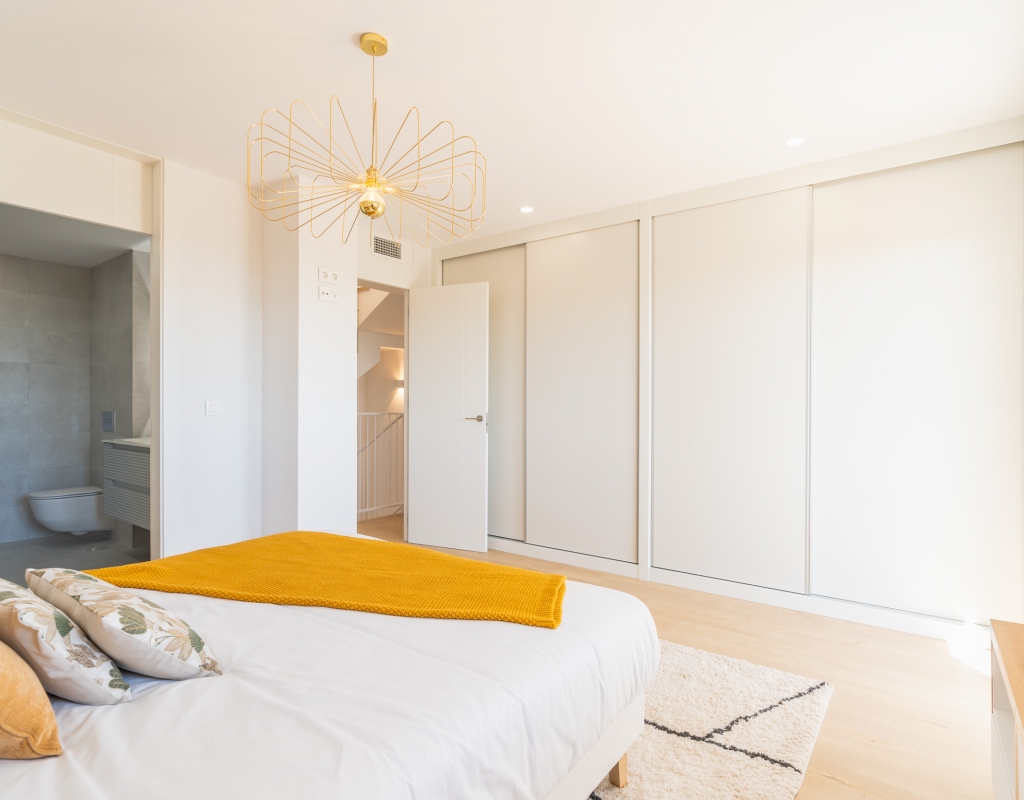 The interiors of the homes are carefully designed to offer maximum comfort and functionality. With options of 3 and 4 bedrooms and 3 bathrooms, each home adapts to the needs of modern families. Wooden floors add warmth and elegance, while air conditioning ensures a pleasant environment year-round. The kitchens are equipped with high-quality appliances, and built-in wardrobes offer efficient and discreet storage. The layout includes a private garage, ensuring convenience and security for residents.