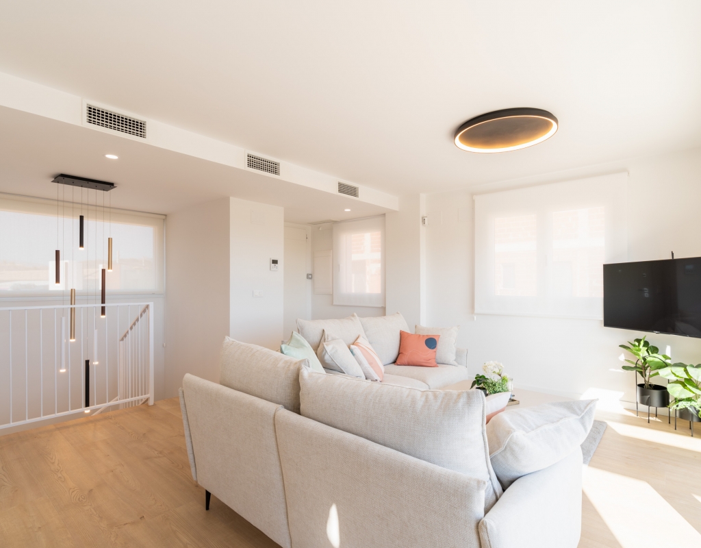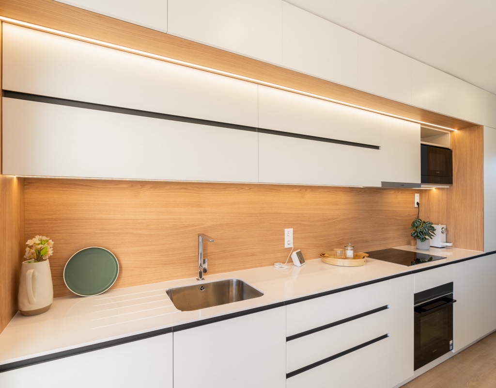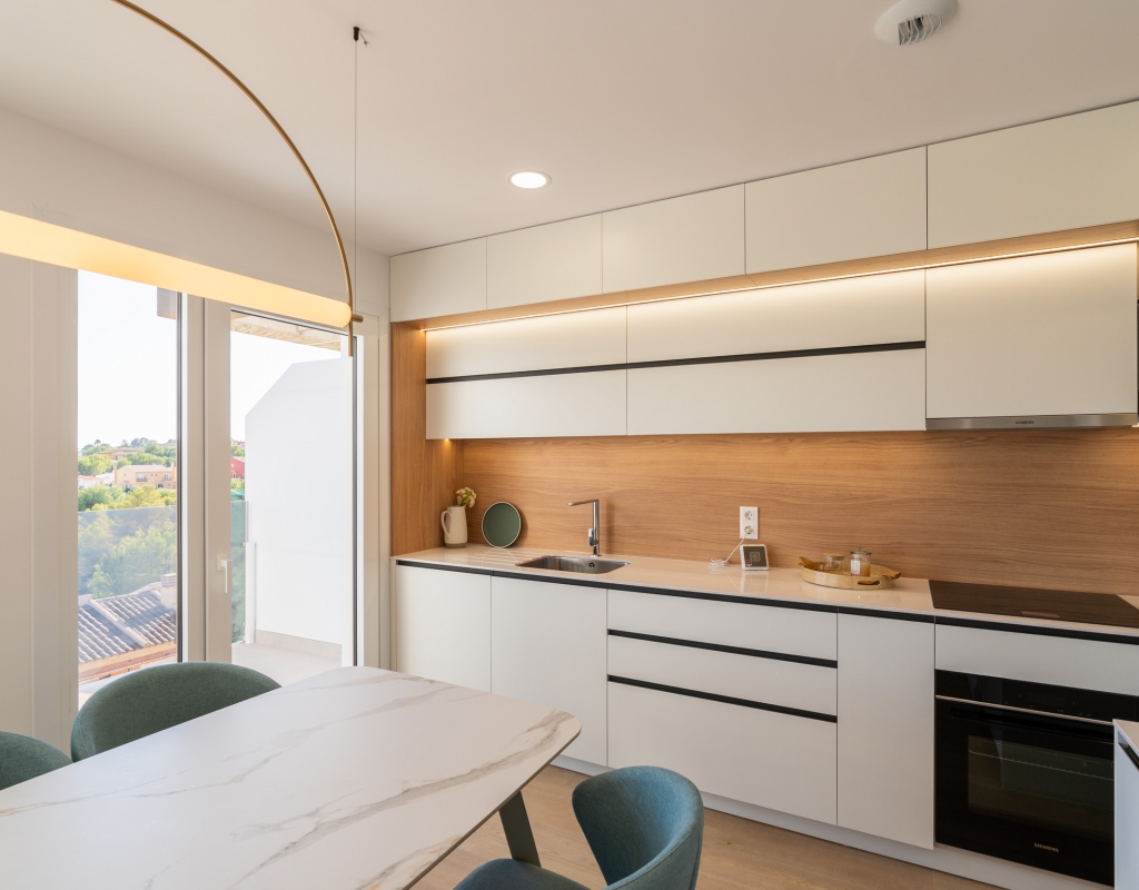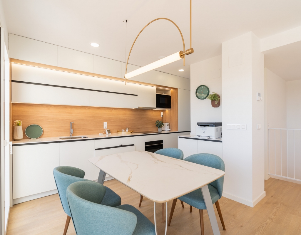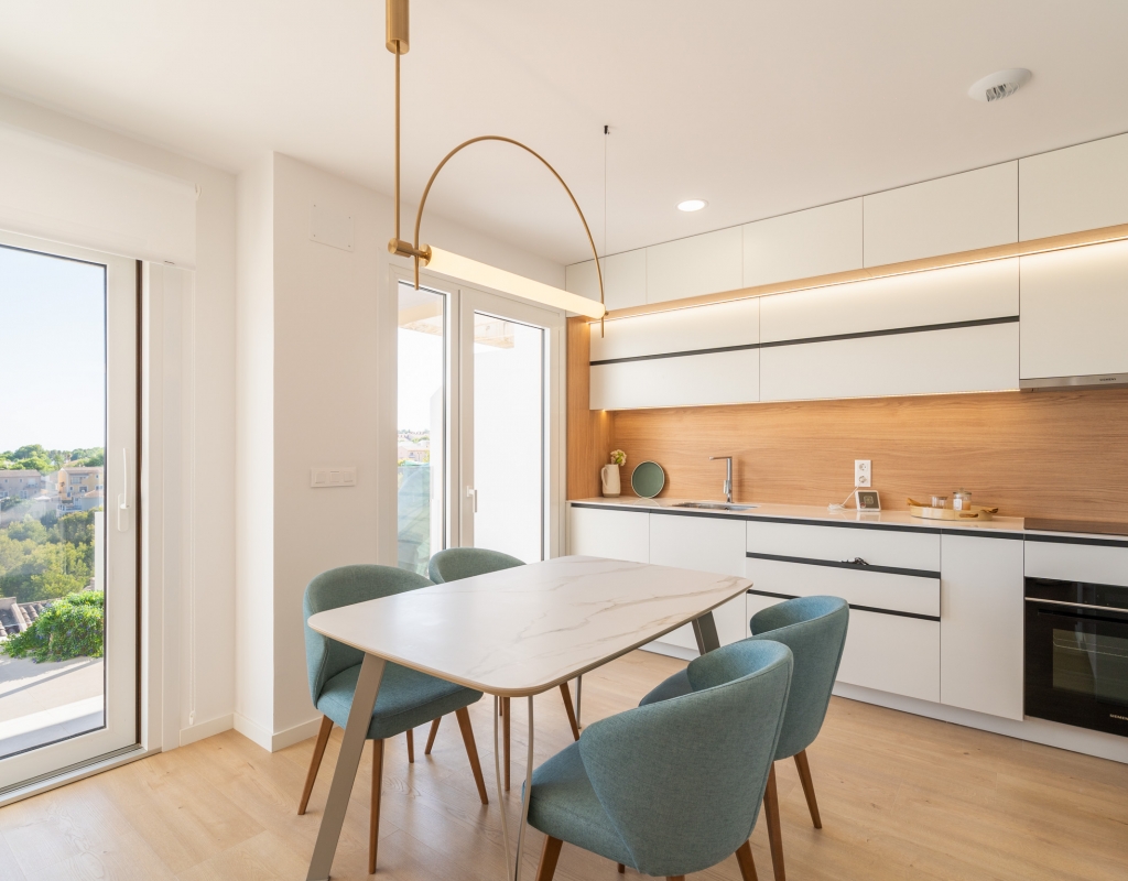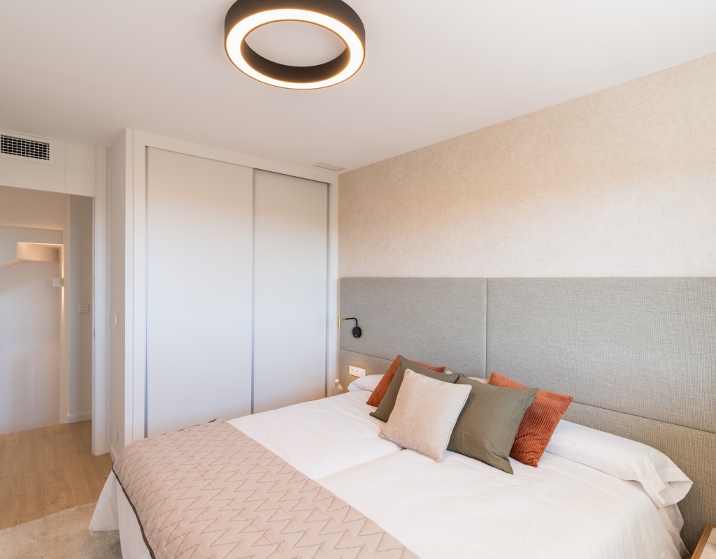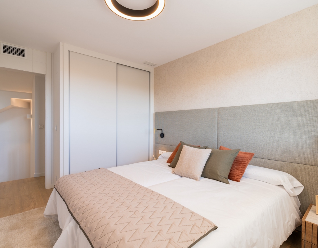 The interiors of the homes are carefully designed to offer maximum comfort and functionality. With options of 3 and 4 bedrooms and 3 bathrooms, each home adapts to the needs of modern families. Wooden floors add warmth and elegance, while air conditioning ensures a pleasant environment year-round. The kitchens are equipped with high-quality appliances, and built-in wardrobes offer efficient and discreet storage. The layout includes a private garage, ensuring convenience and security for residents.