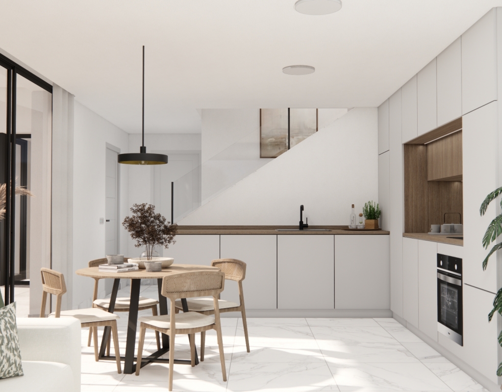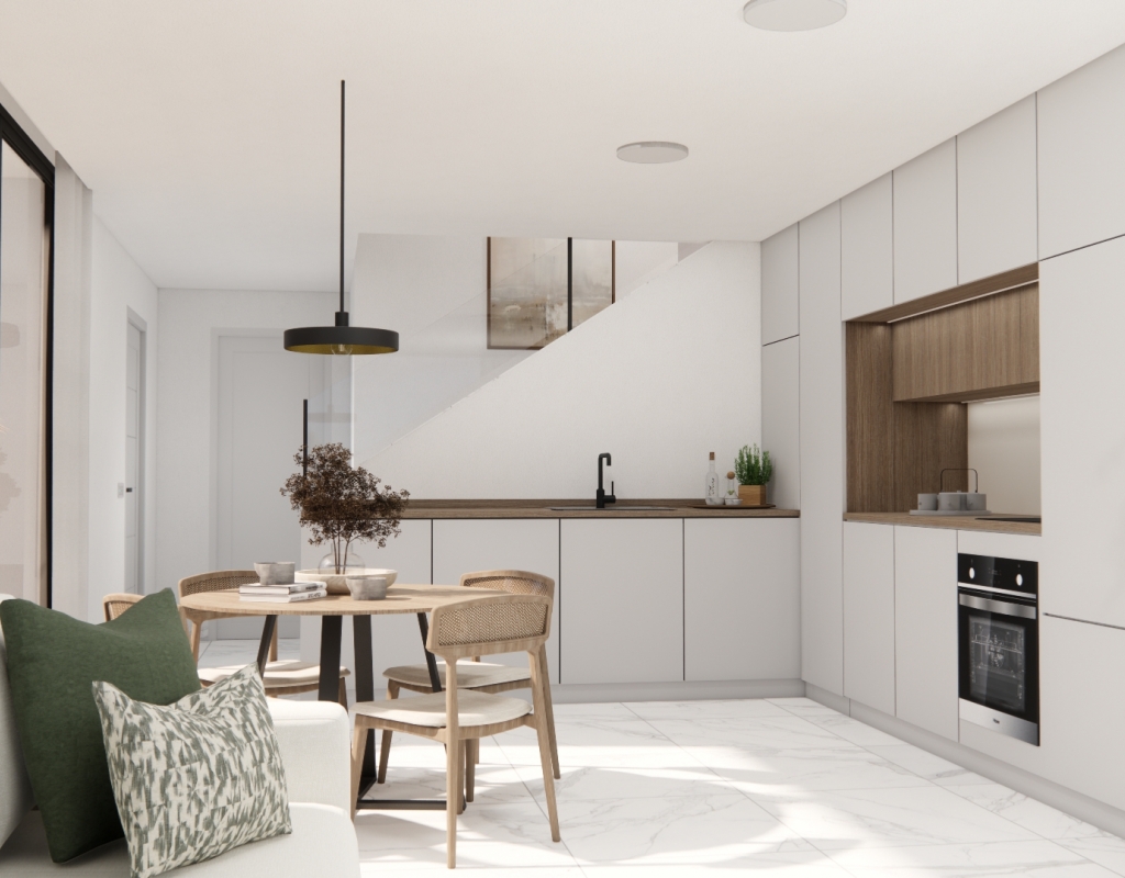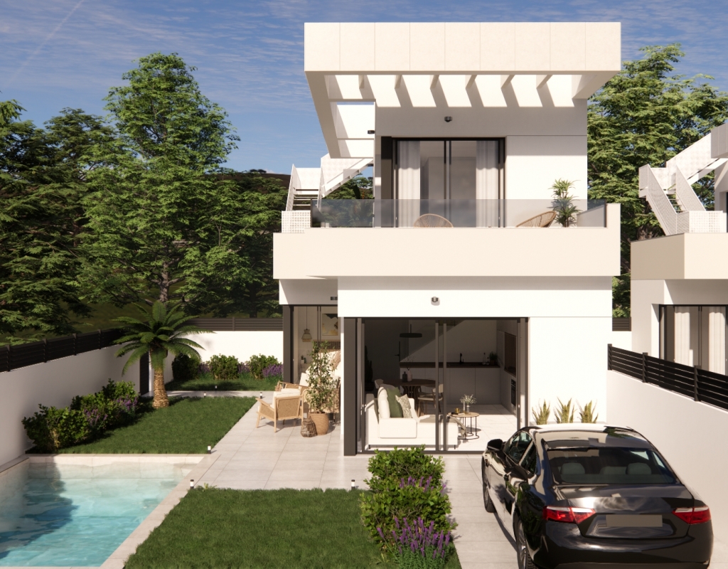 The outdoors of these independent homes in Los Montesinos are designed to fully enjoy the Mediterranean climate. Each property features a private garden, perfect for creating a personal oasis of tranquility. Additionally, the spacious terraces provide an ideal space for relaxing or entertaining guests. The option to include a private pool allows residents to enjoy a refreshing dip in the comfort of their home. Pergolas provide shade and style, creating a welcoming environment to enjoy the outdoors year-round. The optional solarium is a standout feature, offering panoramic views of the surroundings and extra space for leisure.