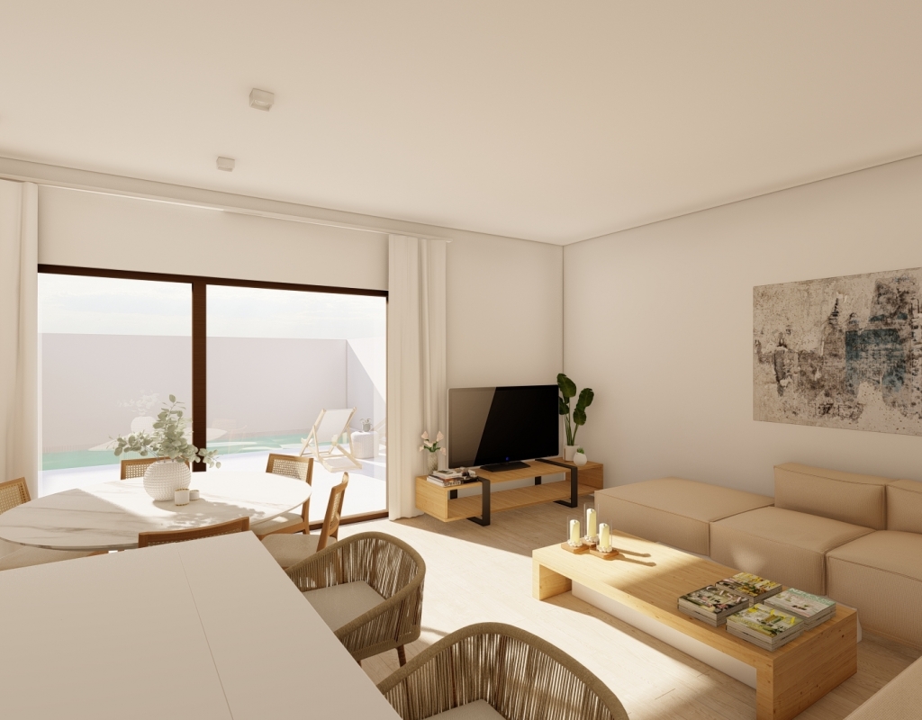 The exteriors of these townhouses are designed to fully enjoy the Mediterranean climate. Each home features a private garden, perfect for relaxation or outdoor activities. Additionally, they have a terrace that becomes the ideal place to enjoy the views and surroundings. For those seeking additional outdoor space, the solarium is a standout feature, offering a perfect spot for sunbathing or outdoor dining. The inclusion of a private pool in each townhouse adds a touch of luxury, allowing for refreshing dips on the hottest days.