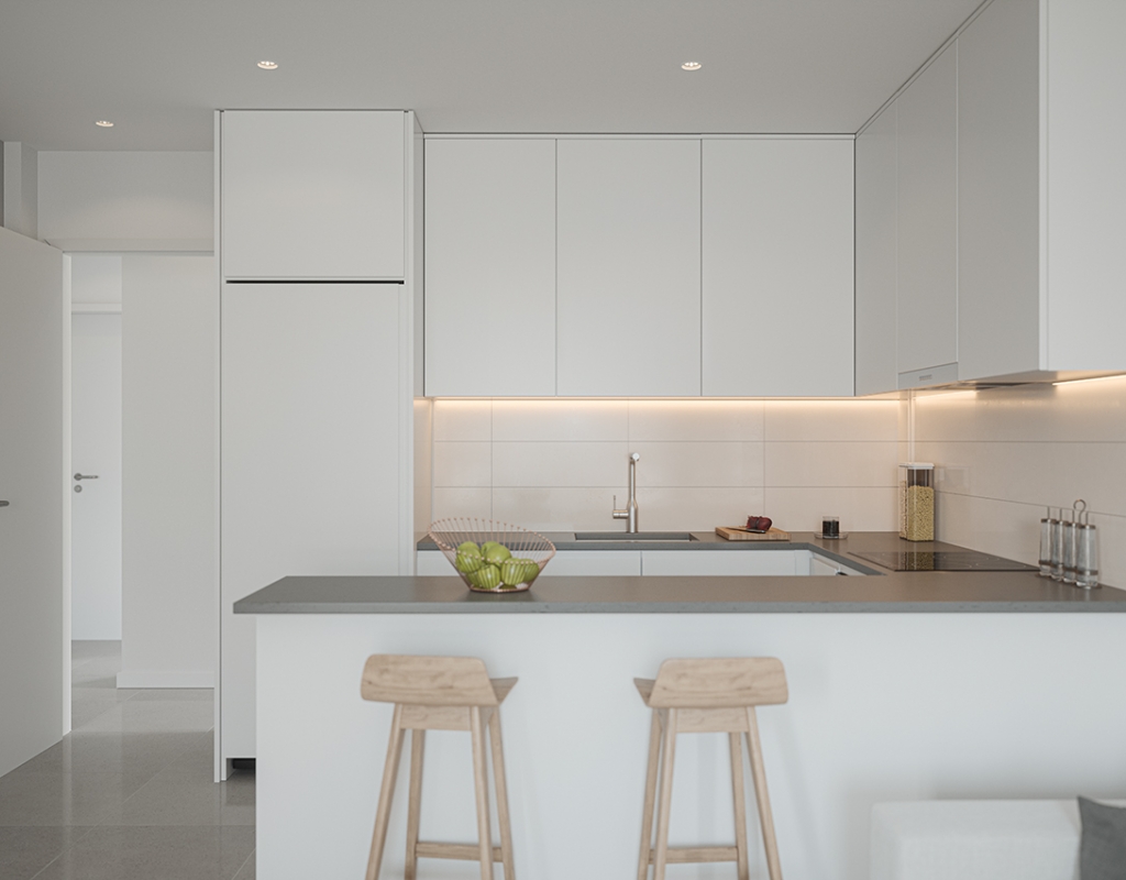 The interiors of the properties are designed to offer comfort and style. The apartments, ground-floor units, and penthouses feature ceramic floors, providing a modern touch and easy maintenance. The kitchens are equipped with appliances, facilitating daily life and allowing for cooking enjoyment from day one. Built-in wardrobes in the bedrooms offer ample storage space, maintaining order and organization. The properties are available in 2 and 3-bedroom configurations, with 2 bathrooms, adapting to different family needs and lifestyles. The layout includes terraces, providing additional space for leisure and relaxation.