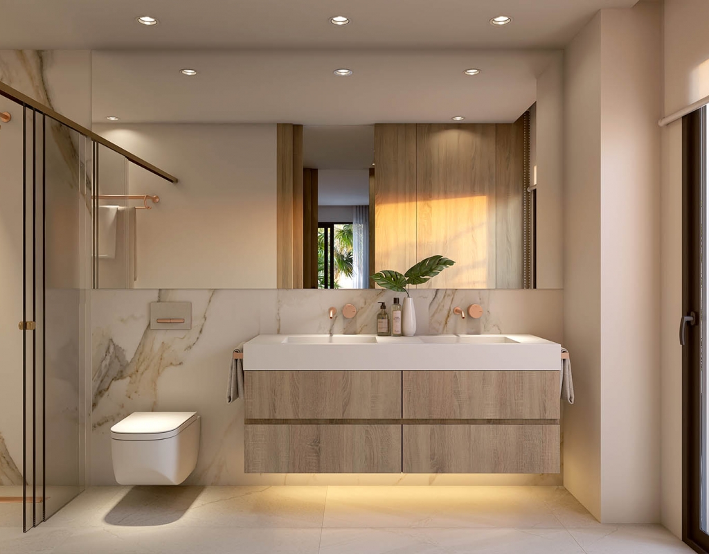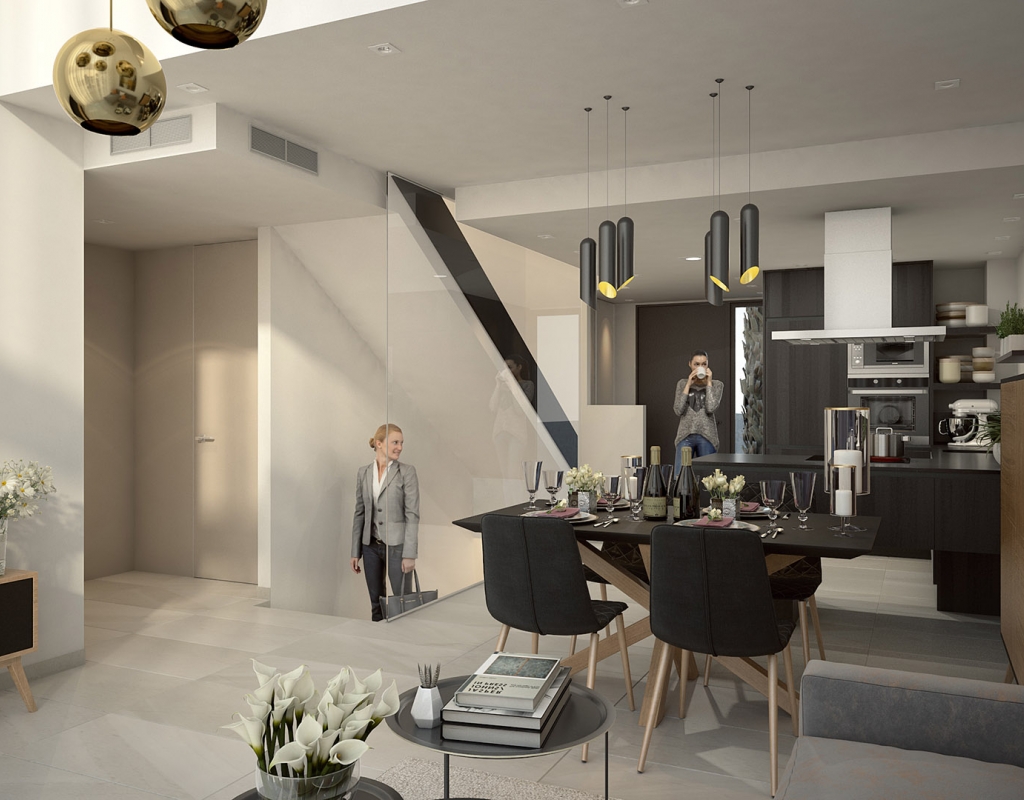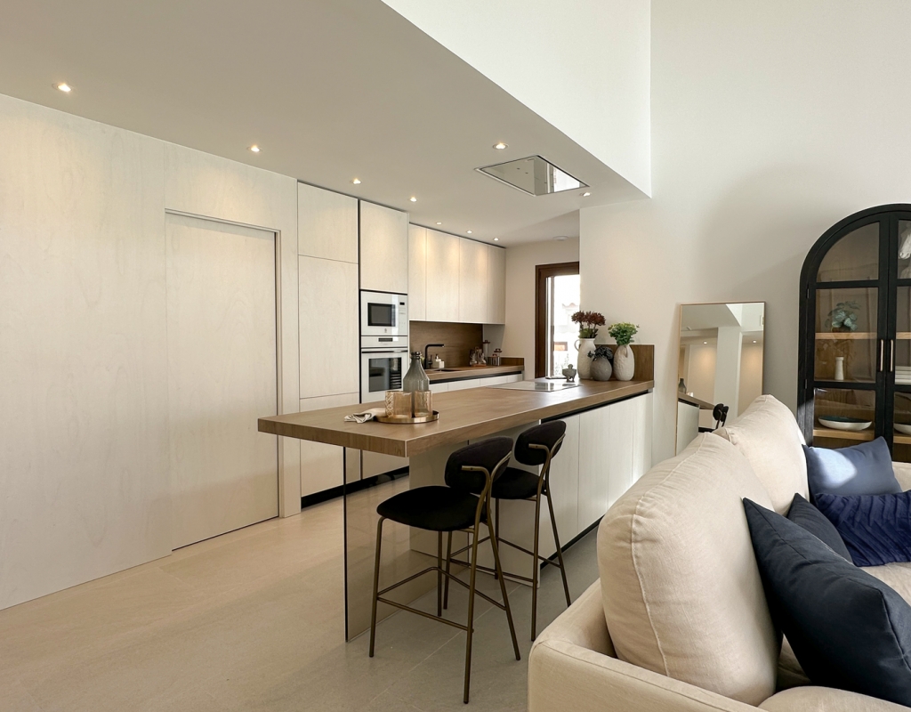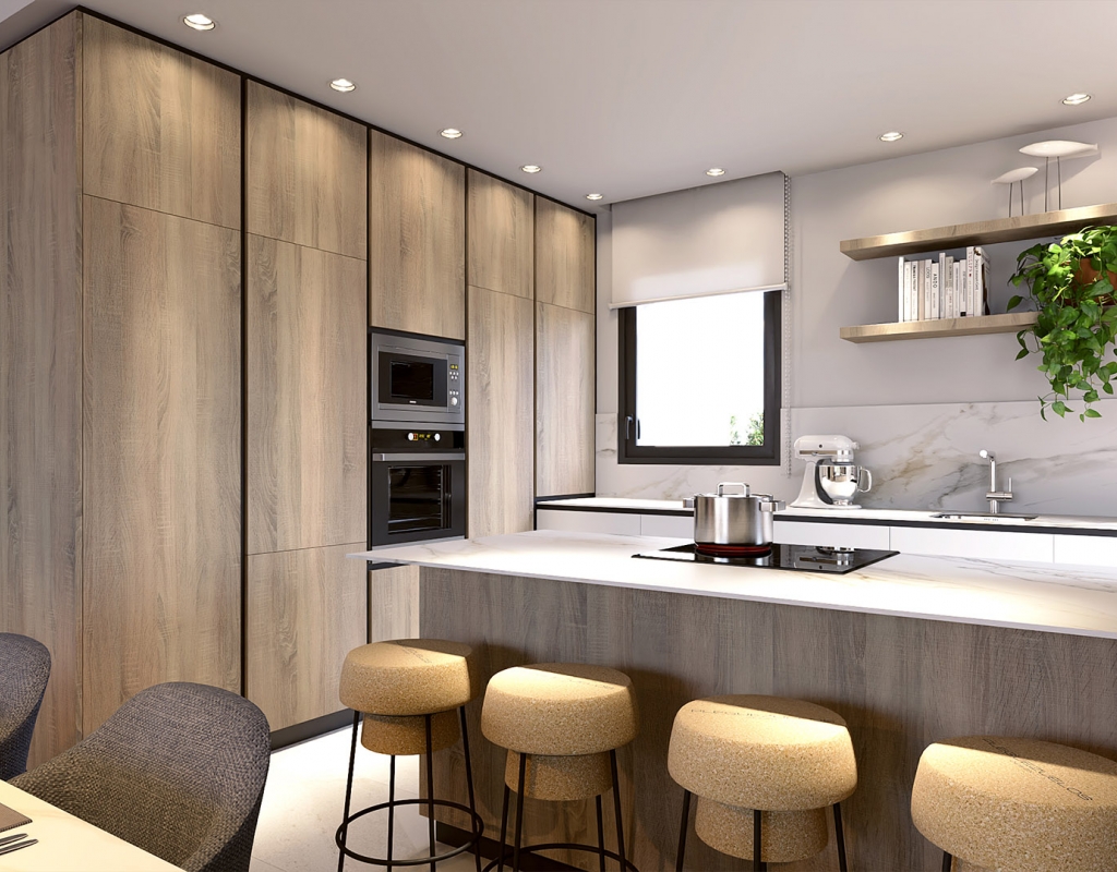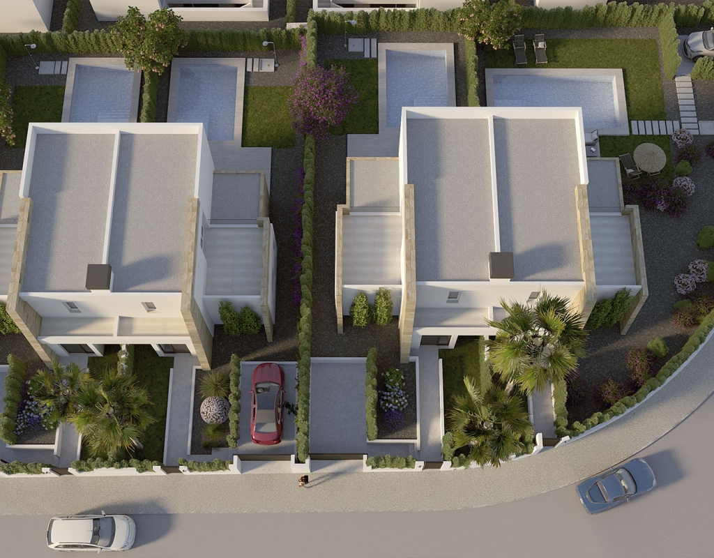 The properties feature carefully designed outdoor spaces to enjoy the Mediterranean climate. Each home has a private garden, perfect for outdoor relaxation. Additionally, the spacious terraces offer extra space for entertainment or simply enjoying the views. Residents can also enjoy a solarium, an ideal place for sunbathing in privacy. The presence of a pergola adds a touch of elegance and functionality, providing shade and style to the outdoor spaces. For those seeking a touch of luxury, some properties include a private pool, perfect for cooling off on hot days.
