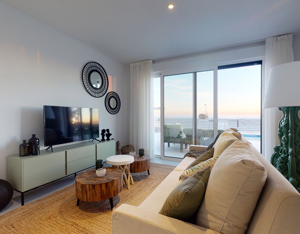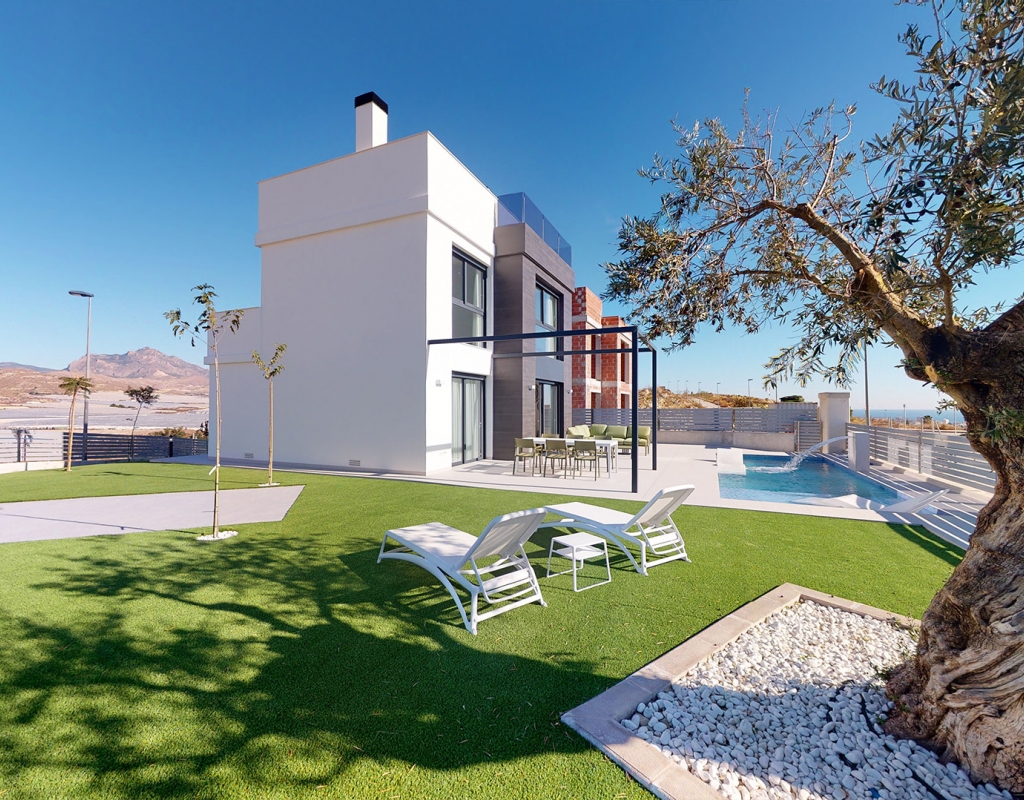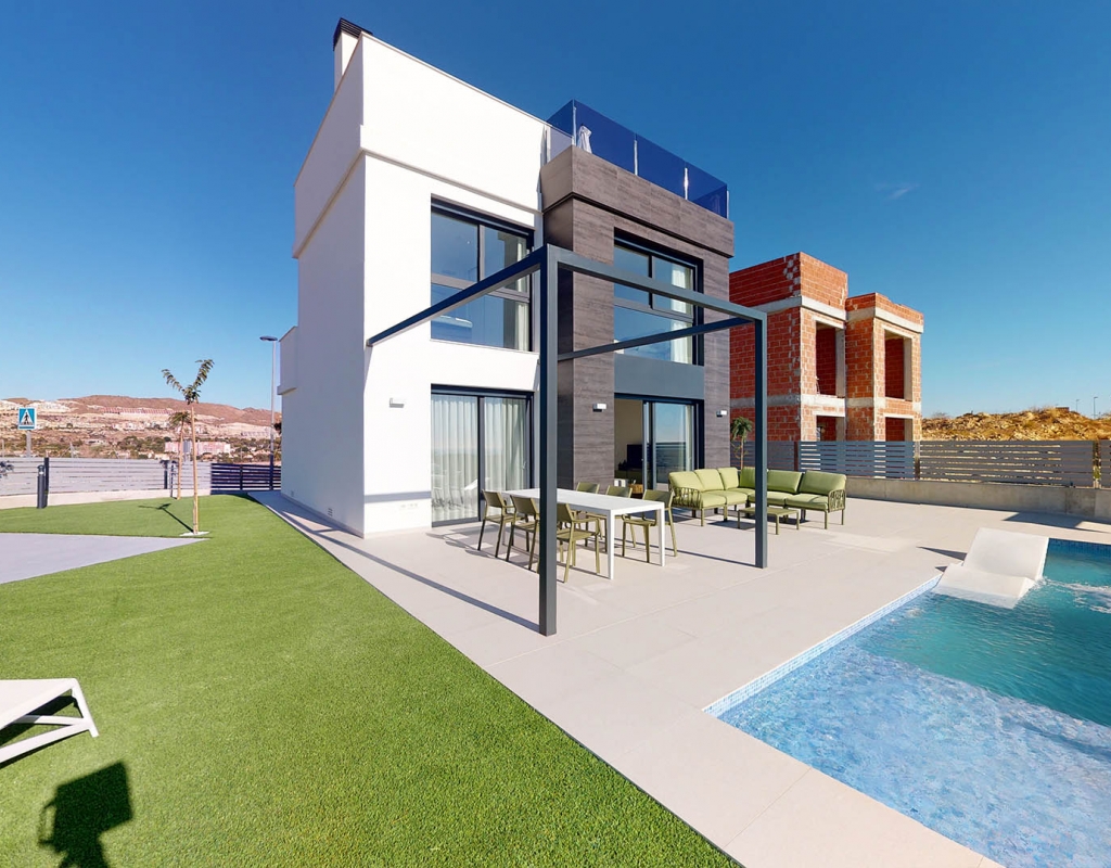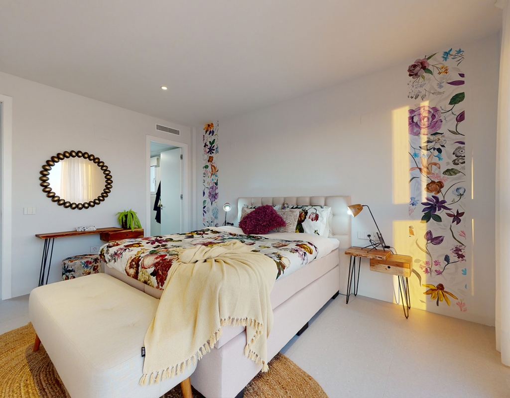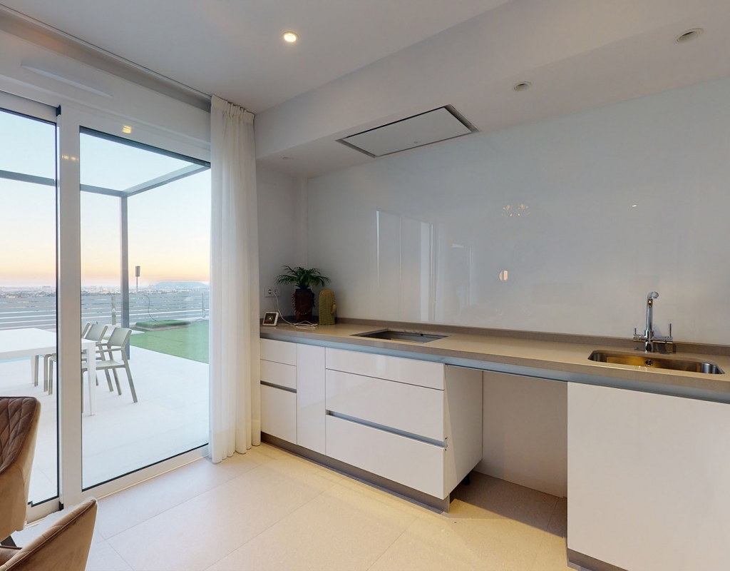 The exteriors of these homes in Mutxamel are designed to maximize enjoyment of the Mediterranean climate. Each property features a private garden, perfect for creating a personal oasis of tranquility. The terraces offer additional outdoor space, ideal for al fresco dining or simply relaxing while enjoying sea views. Additionally, each home has a private pool, providing a refreshing place to enjoy during warm summer days. The solarium is another highlight, offering an elevated space for sunbathing with total privacy.