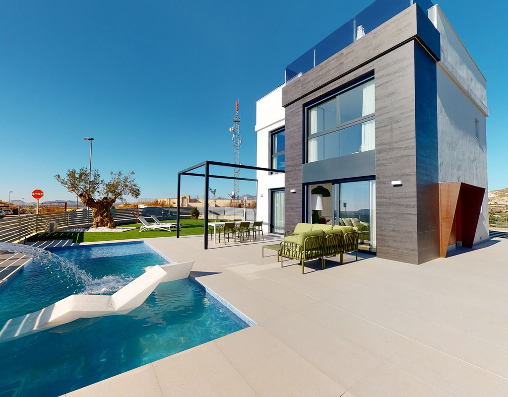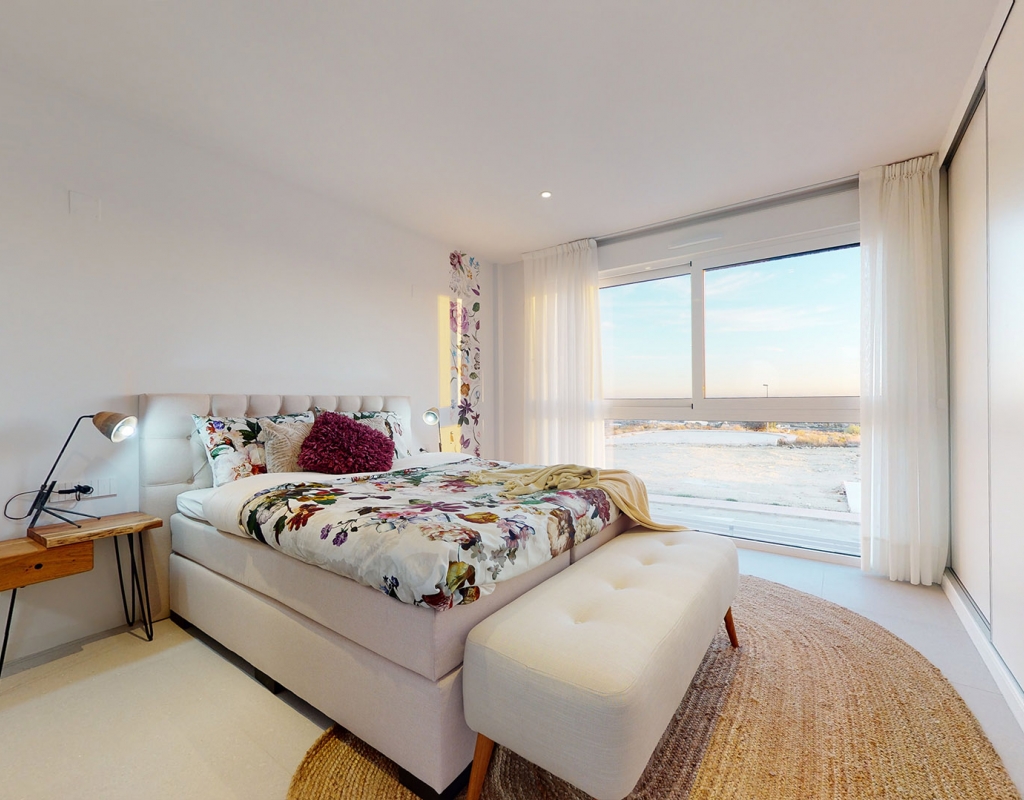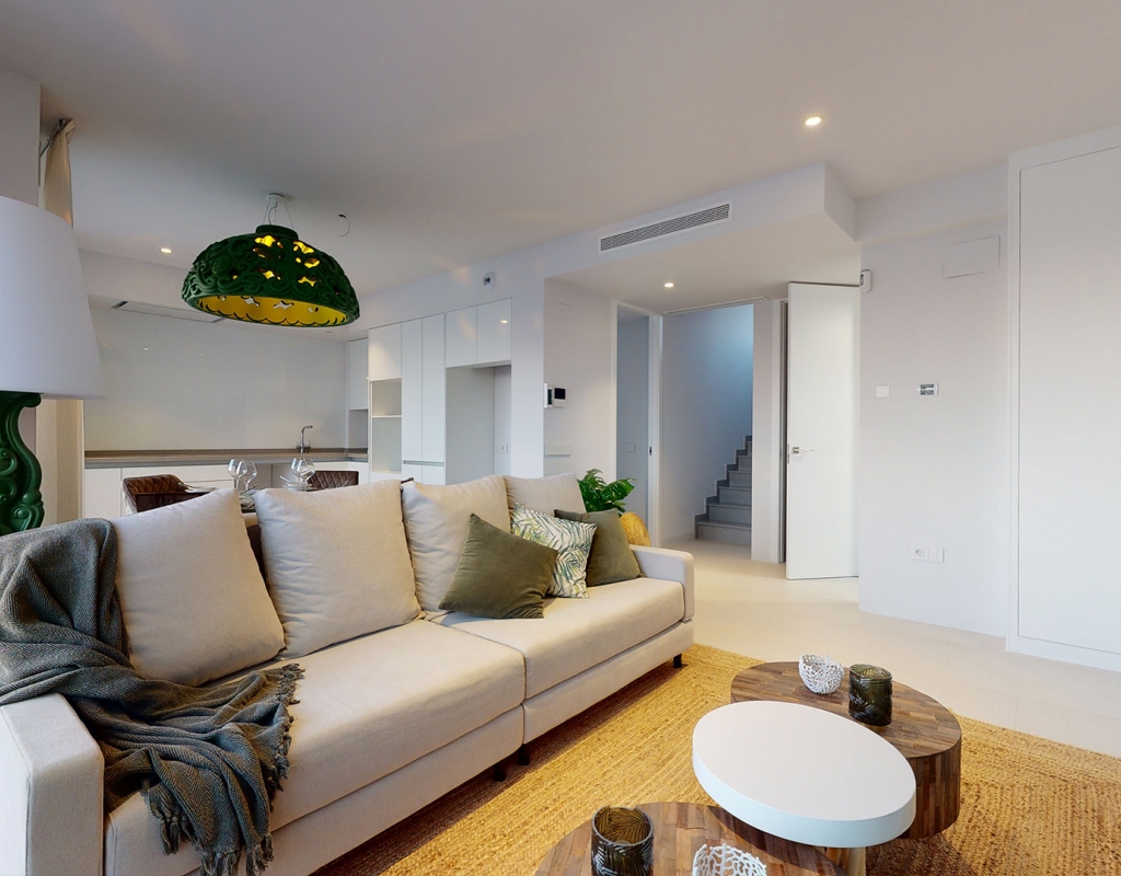 The interior of these independent homes in Mutxamel is carefully designed to offer comfort and functionality. Ceramic floors add a modern touch and are easy to maintain. The homes are equipped with appliances, making daily life easier from day one. Built-in wardrobes provide ample storage space, maintaining order and organization. Additionally, they feature pre-installed air conditioning, allowing efficient climate control according to seasonal needs. The layout includes options for 3 bedrooms and 2 or 3 bathrooms, adapting to different family needs. The video intercom adds an extra level of security and convenience.