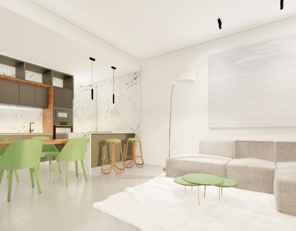 The exteriors of these penthouses have been carefully designed to maximize enjoyment of the Mediterranean climate. Each property features a spacious terrace, ideal for outdoor relaxation or sunset dining. Additionally, the private solarium offers extra space for sunbathing or simply enjoying the panoramic views of the surroundings. The proximity to the sea, just 350 meters away, allows for beach walks and water activities, making these penthouses a perfect choice for sea lovers.