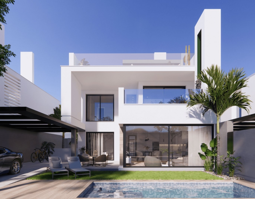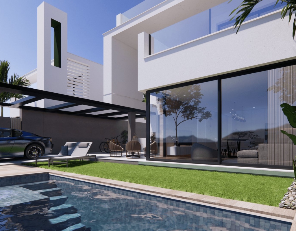 The exterior design of these independent homes in Torre-Pacheco is simply impressive. Each property features a private pool, perfect for enjoying the Mediterranean climate. Private terraces and gardens offer an ideal space for outdoor leisure, while pergolas add a touch of elegance and shade. The presence of a solarium allows for panoramic views and sun enjoyment all day long. Additionally, the location just 4 km from the sea makes these homes ideal for beach lovers.