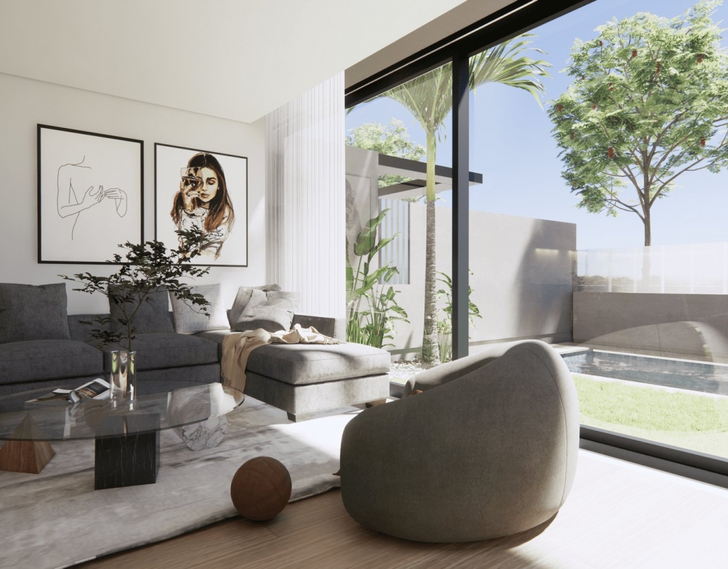 The interior of these independent homes is designed to offer maximum comfort. With three bedrooms and three bathrooms, each space is crafted to maximize functionality and comfort. Ceramic floors add a modern touch and are easy to maintain. Electric shutters and included appliances simplify daily life, while built-in wardrobes provide efficient storage. Every detail has been carefully considered to create a welcoming and modern home.