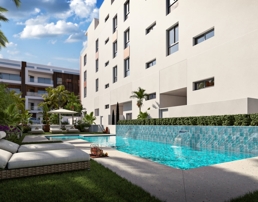 The common areas of this residential complex in La Vila Joiosa are designed to promote community living and enjoyment for its residents. The communal gardens offer a green space to relax and enjoy the natural surroundings. The communal pool is an ideal meeting point to cool off and socialize during the warmer months. These common areas are designed to complement the lifestyle of the residents, providing spaces to enjoy leisure time in a safe and pleasant environment.