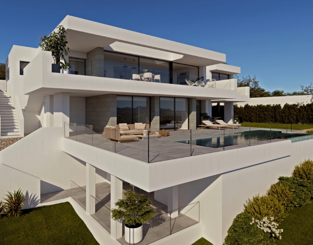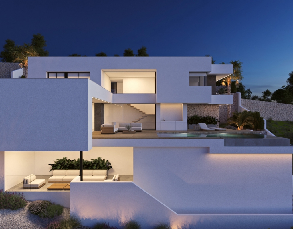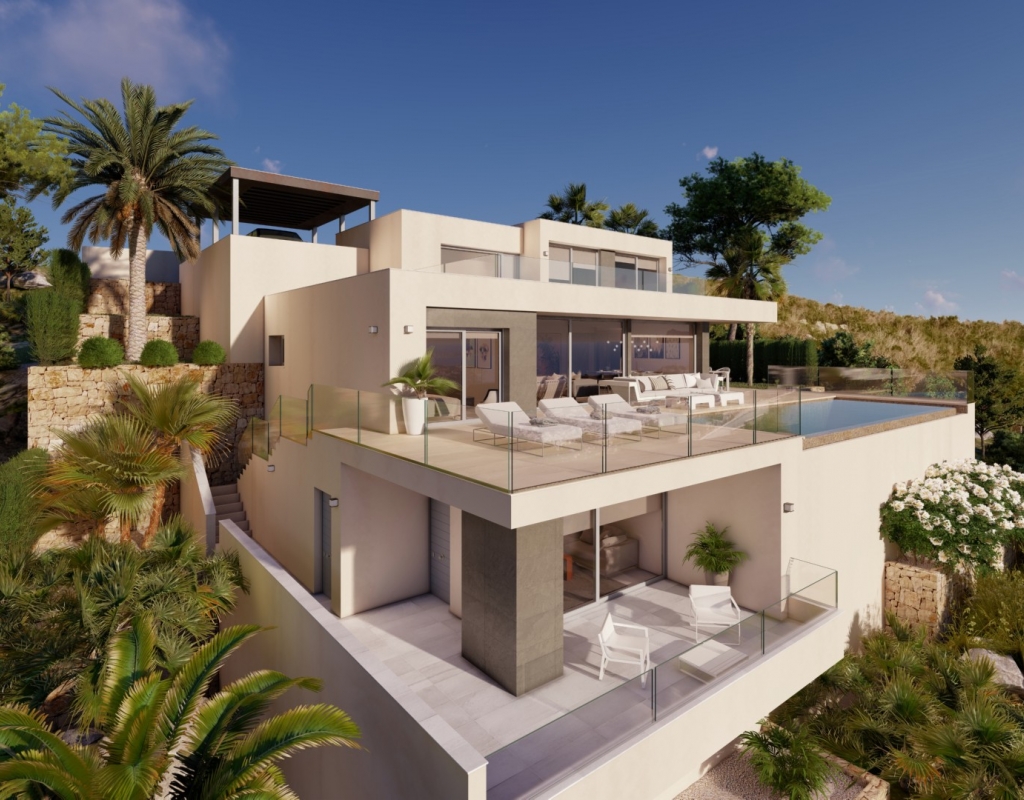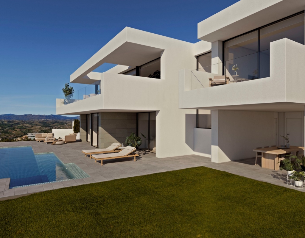 The exterior design of the villas in Cumbre del Sol is intended to maximize enjoyment of the Mediterranean climate. Each villa features a private garden and a spacious terrace, perfect for outdoor relaxation. Additionally, they have a private pool, ideal for cooling off on hot days. The villas are equipped with a jacuzzi and pergola, offering additional space for leisure and relaxation. The presence of a private garage ensures convenience and security for residents' vehicles.