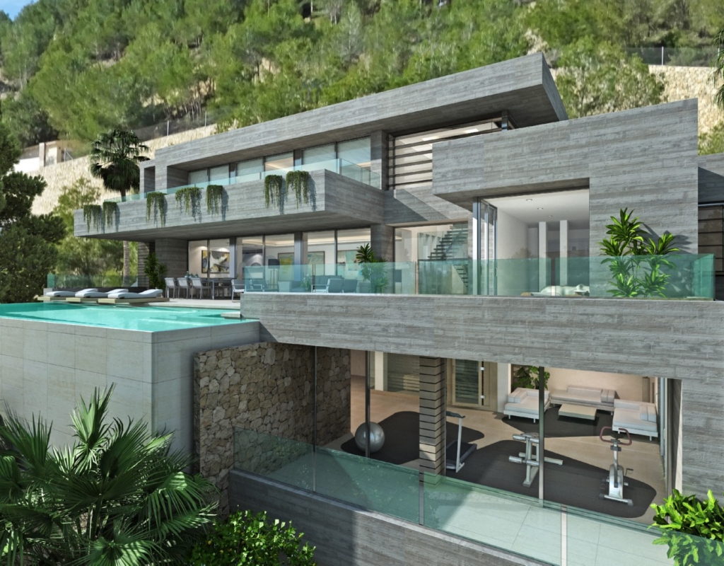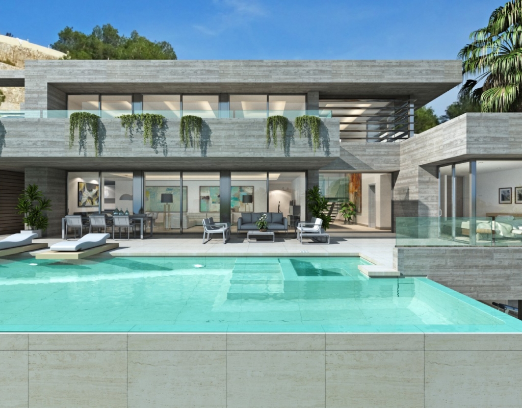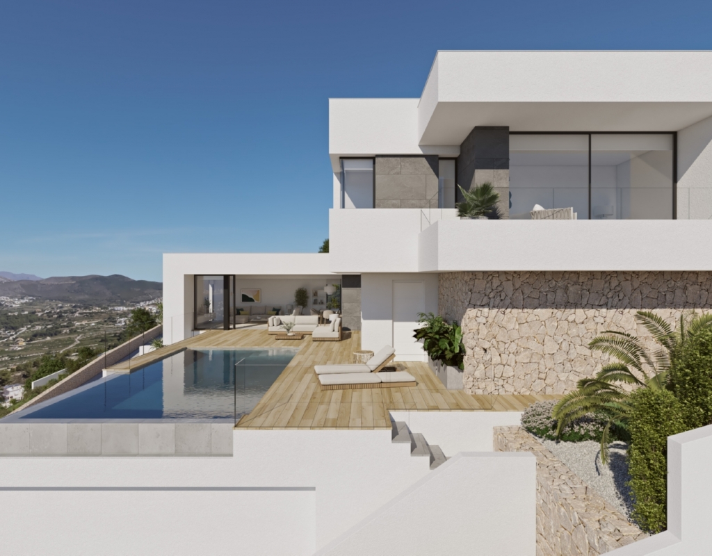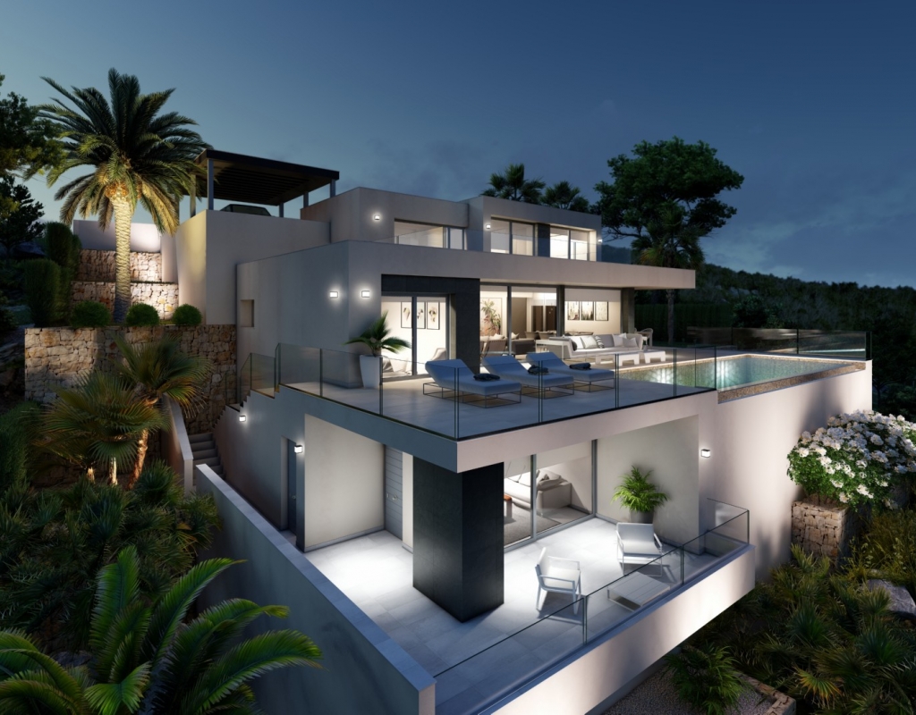 The exterior design of the villas in Cumbre del Sol is intended to maximize enjoyment of the Mediterranean climate. Each villa features a private garden and a spacious terrace, perfect for outdoor relaxation. Additionally, they have a private pool, ideal for cooling off on hot days. The villas are equipped with a jacuzzi and pergola, offering additional space for leisure and relaxation. The presence of a private garage ensures convenience and security for residents' vehicles.