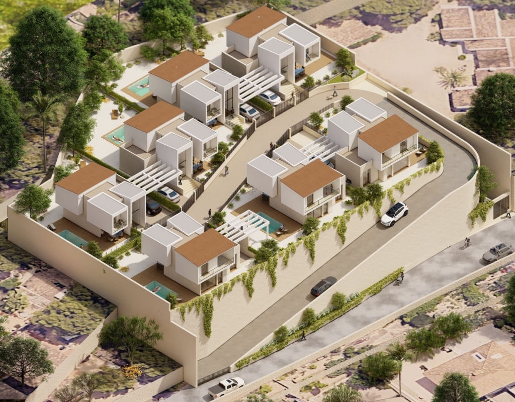 The exteriors of these homes in La Nucia are designed to offer an exceptional outdoor lifestyle. Each property features a private garden, perfect for enjoying relaxing moments or hosting family gatherings. Additionally, the homes have a terrace, ideal for enjoying the sea views and the Mediterranean climate. The presence of a private pool in each home adds a touch of luxury and exclusivity, allowing residents to refresh and enjoy the sun in the comfort of their home. The exterior design is intended to harmoniously integrate with the natural surroundings, creating a space of peace and tranquility.