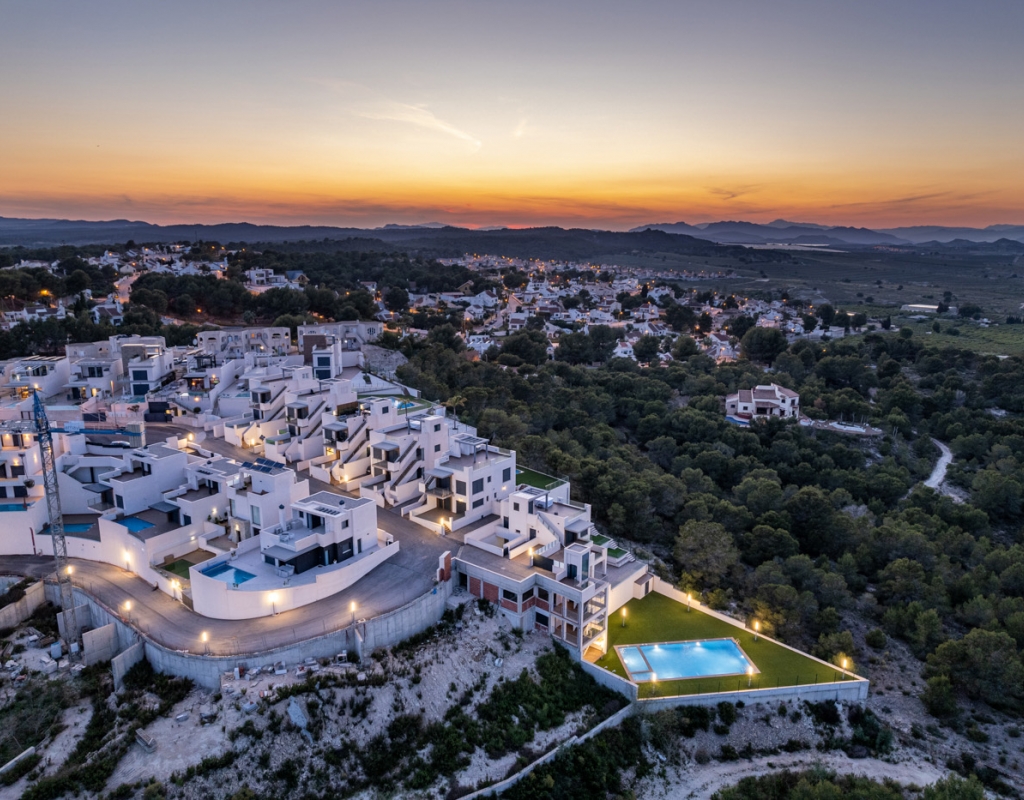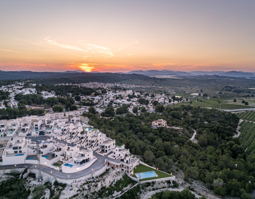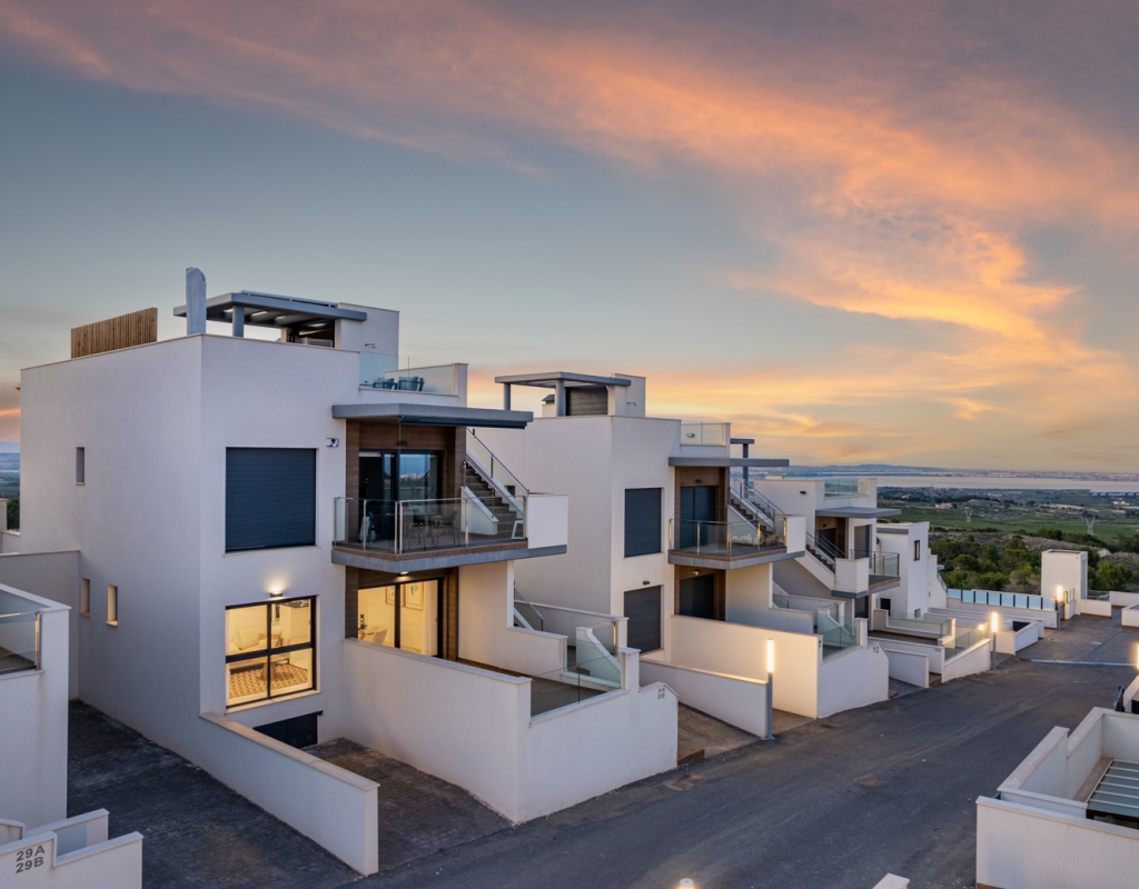 Located in the charming town of San Miguel de Salinas, this exclusive residential complex offers a selection of 8 bungalows, divided between high-bungalows and low-bungalows. The location is ideal for those seeking a tranquil environment without being too far from urban amenities. San Miguel de Salinas is known for its pleasant climate and proximity to the coast, making it a perfect place to enjoy Mediterranean life. Additionally, the nearest airport is just 26 kilometers away, facilitating access for frequent travelers.
