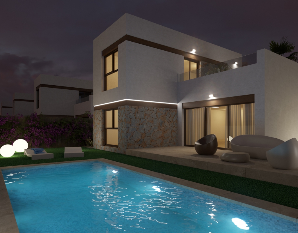 Located in the exclusive area of La Rellana, this residential complex offers a total of 9 independent homes, designed for those seeking a tranquil and sophisticated lifestyle. The location is ideal for golf enthusiasts, being just 0.5 km from a prestigious course. The homes are carefully designed to offer maximum comfort and functionality, with a layout that includes 3 bedrooms and 2 bathrooms, adapting to the needs of modern families. The architecture of the houses integrates perfectly with the surroundings, offering a balance between modernity and nature.