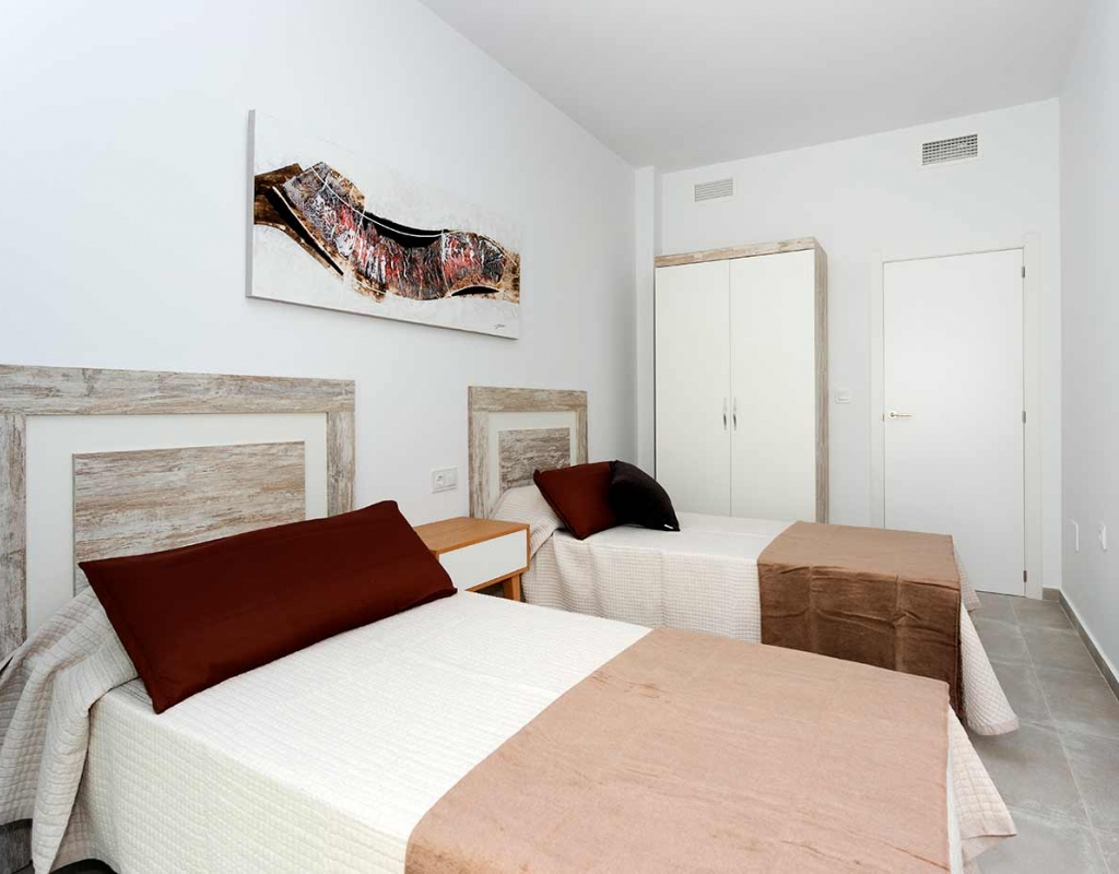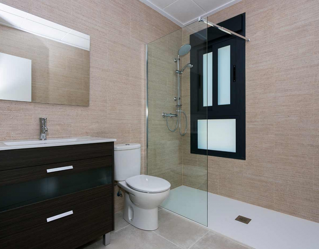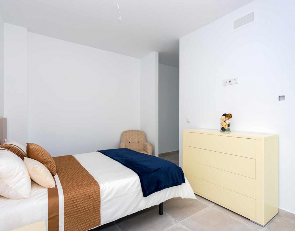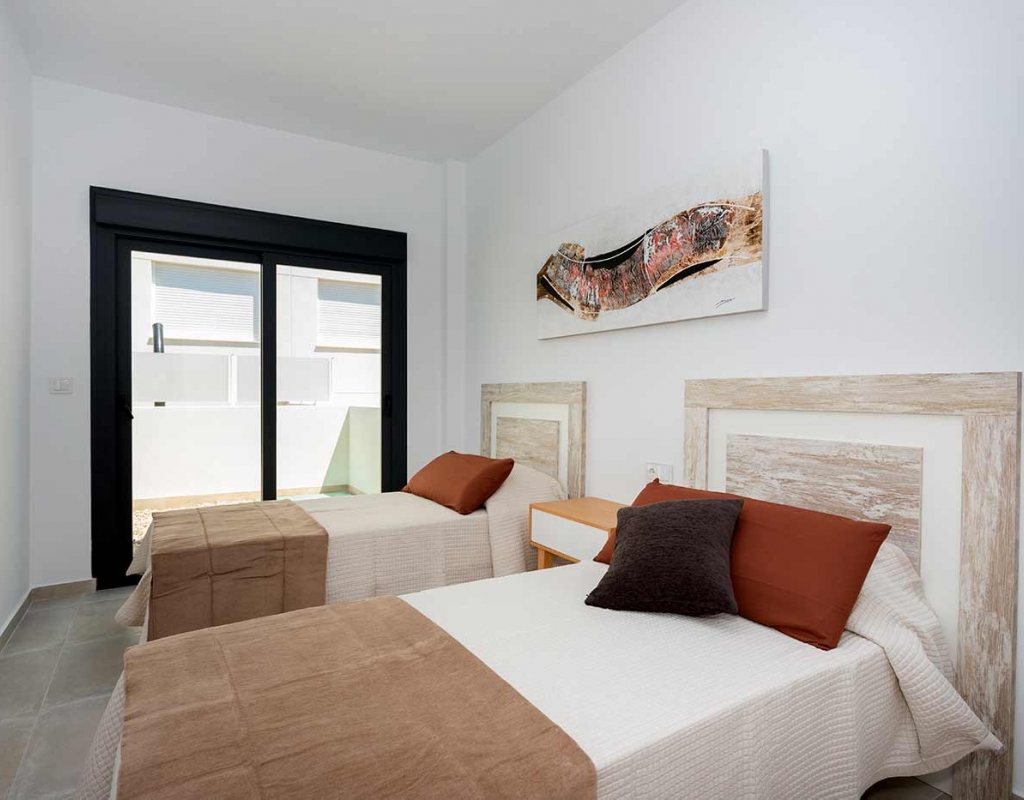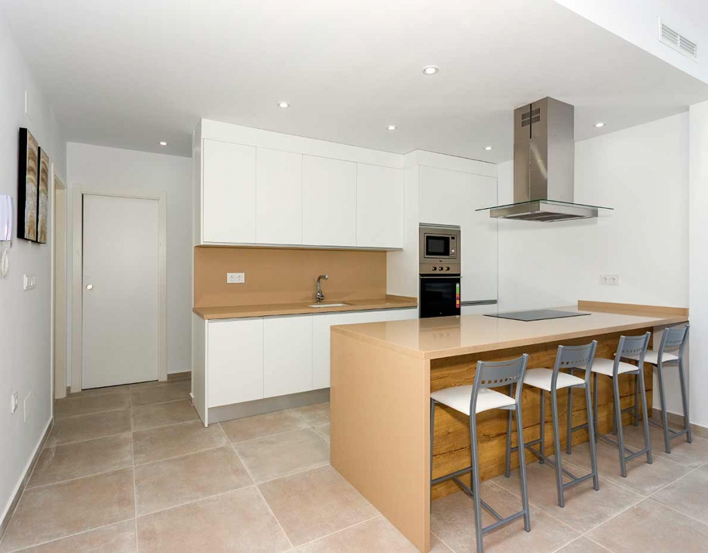 Newly built villas on one level in the new part of Daya Nueva. Only a few minutes walk to the centre of the village. The property consists of 3 bedrooms, 2 bathrooms and a private pool of 18m2. Living/dining room with double height ceiling, open plan kitchen, natural light and option for solarium. The master bedroom has walk in wardrobe option and en suite bathrooms.