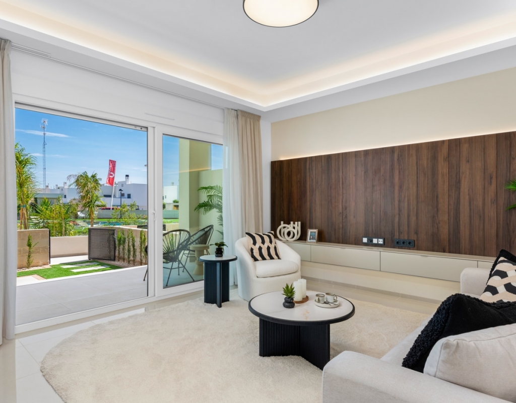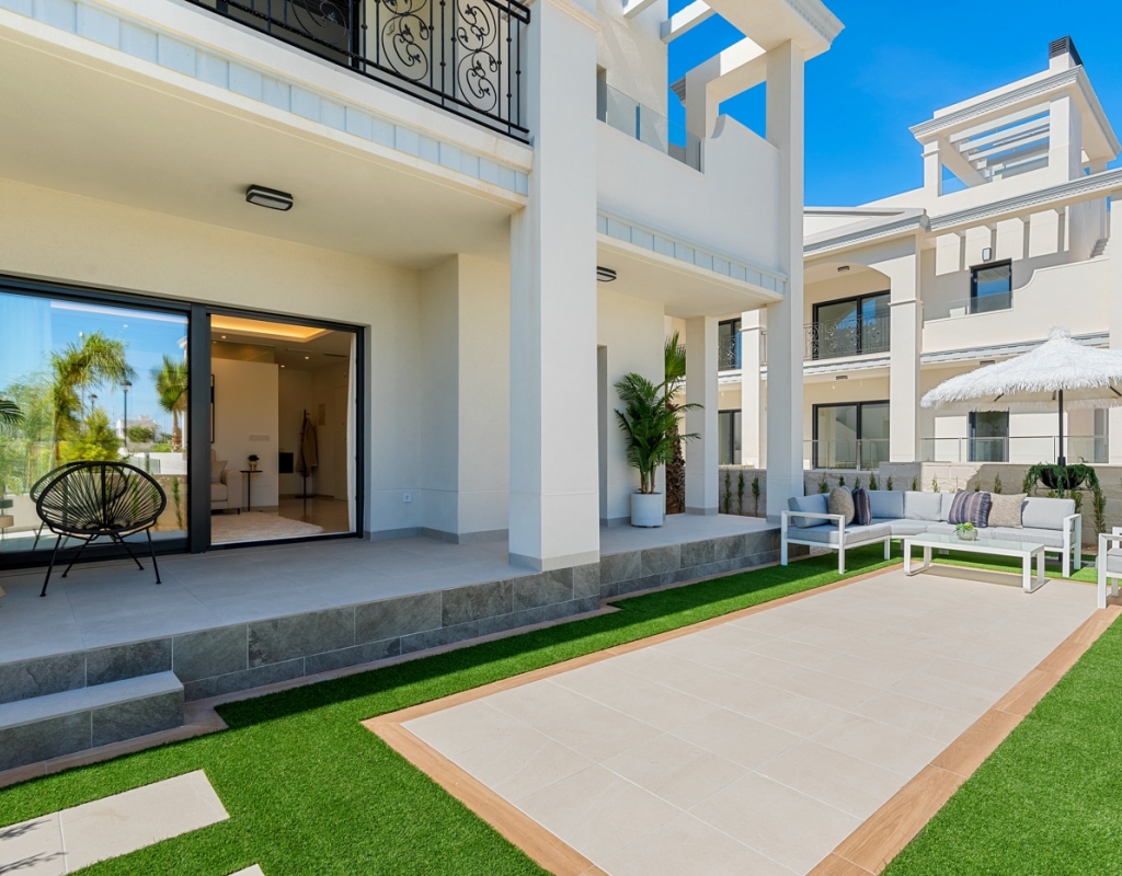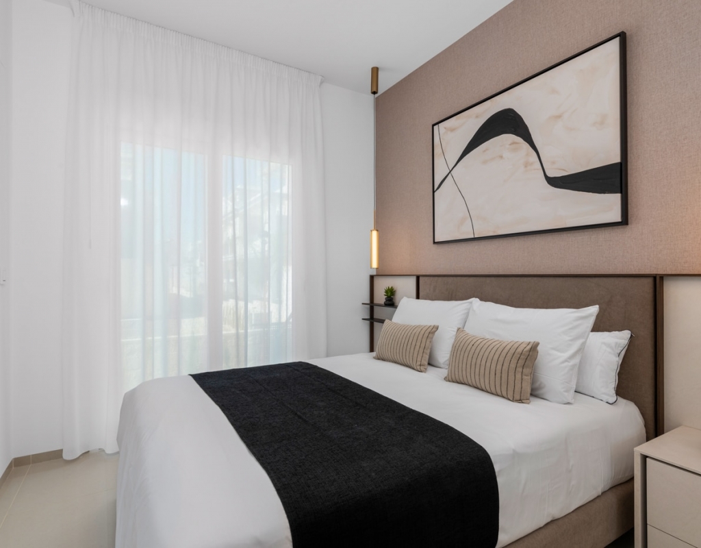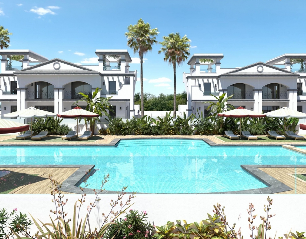 The exteriors of these bungalows are designed to maximize enjoyment of the Mediterranean climate. Each property features a private garden, perfect for relaxing or enjoying outdoor activities. The terraces offer additional space for entertainment or simply to enjoy the views. Additionally, the presence of a solarium provides an ideal place to sunbathe in total privacy. The inclusion of a pergola adds a touch of elegance and functionality, allowing enjoyment of the outdoor space at any time of day.