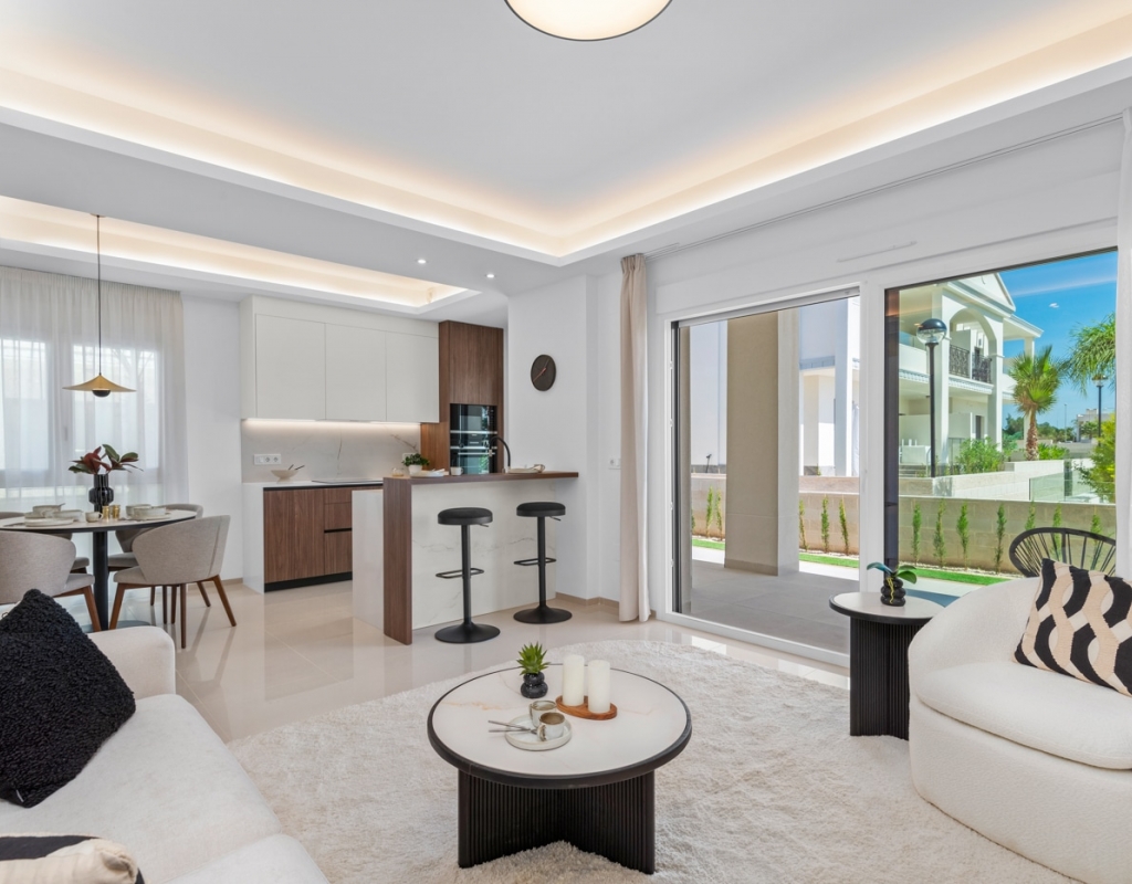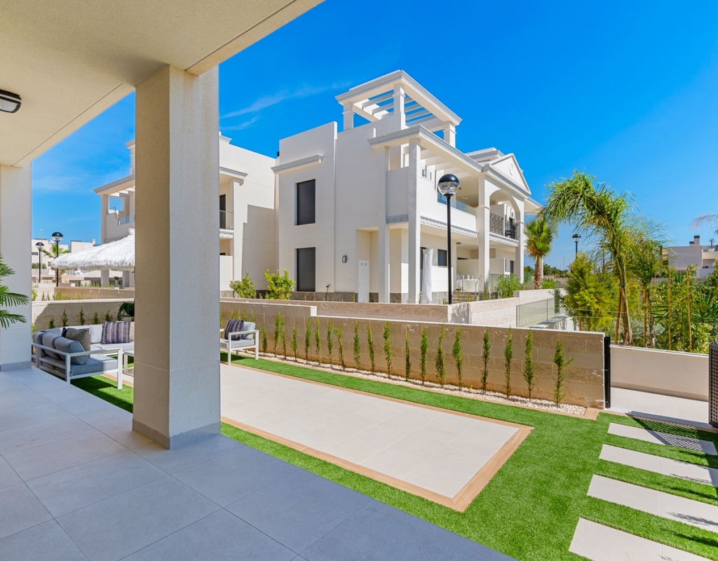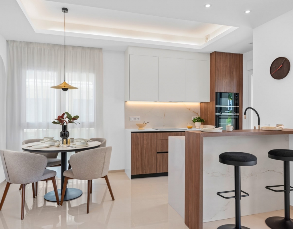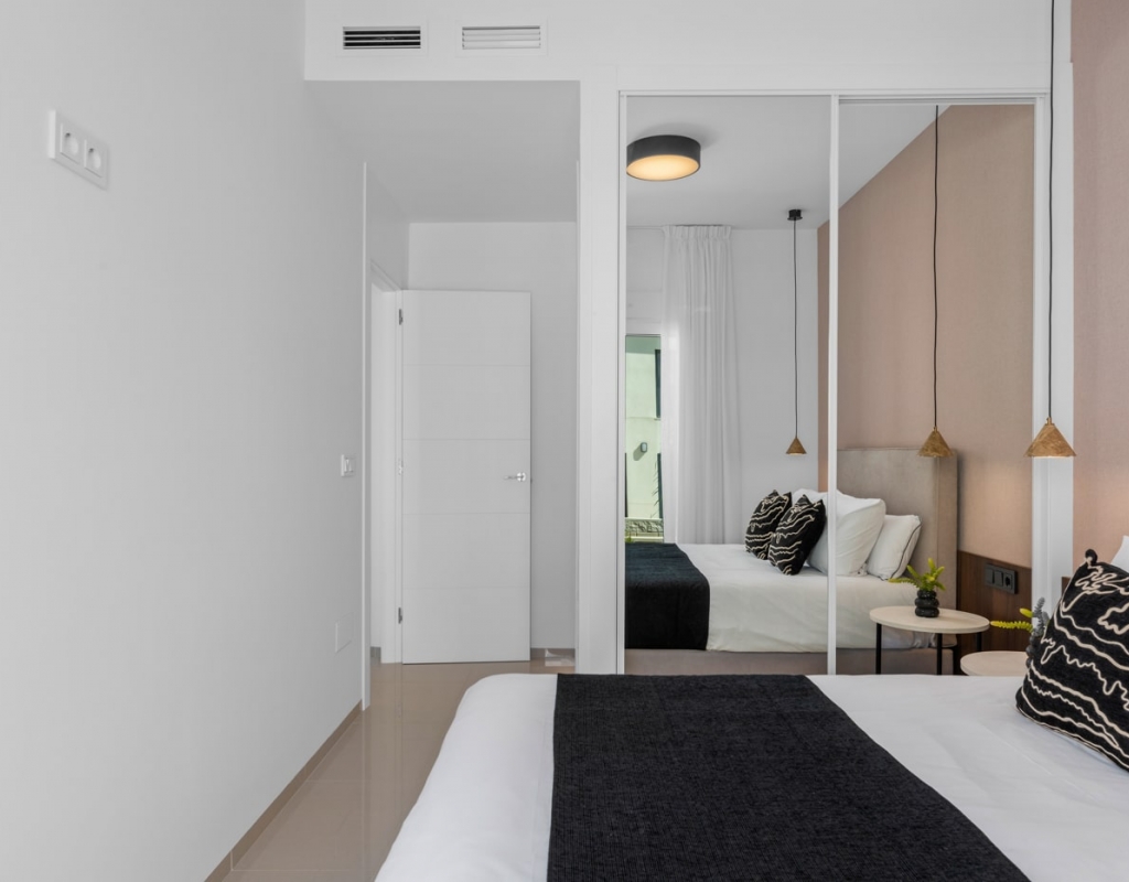 The exteriors of these bungalows are designed to maximize enjoyment of the Mediterranean climate. Each property features a private garden, perfect for relaxing or enjoying outdoor activities. The terraces offer additional space for entertainment or simply to enjoy the views. Additionally, the presence of a solarium provides an ideal place to sunbathe in total privacy. The inclusion of a pergola adds a touch of elegance and functionality, allowing enjoyment of the outdoor space at any time of day.