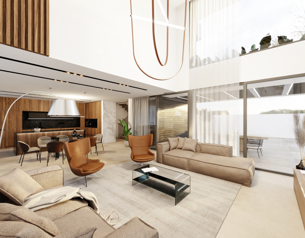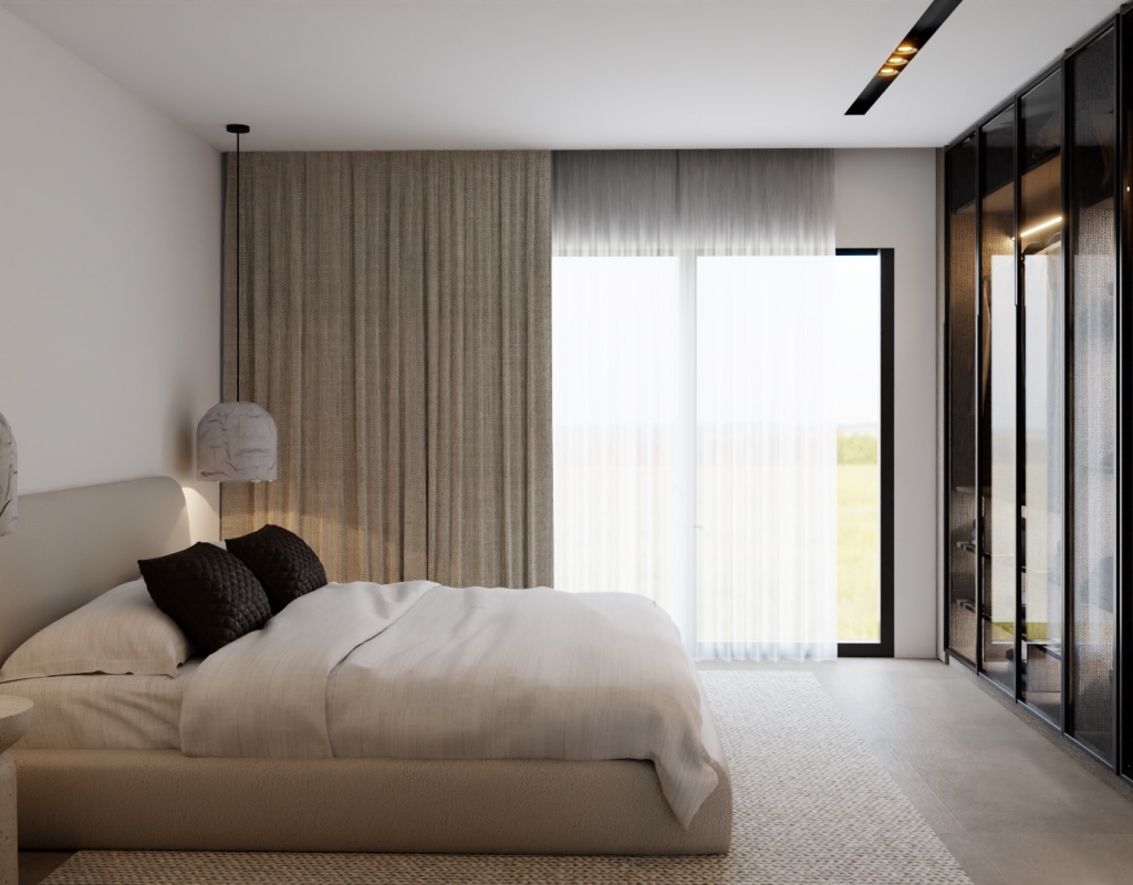 Inside, the villa features built-in wardrobes offering practical storage solutions, while underfloor heating ensures comfort throughout the year. The inclusion of modern home appliances further enhances convenience, making daily living a breeze.