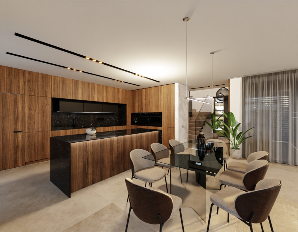 The highlight of this property is its private pool, perfect for relaxing under the sun or entertaining guests. Complemented by a beautifully landscaped garden and a stylish terrace, outdoor living is effortlessly chic. A pergola provides an ideal spot for al fresco dining or simply enjoying the warm Mediterranean climate.