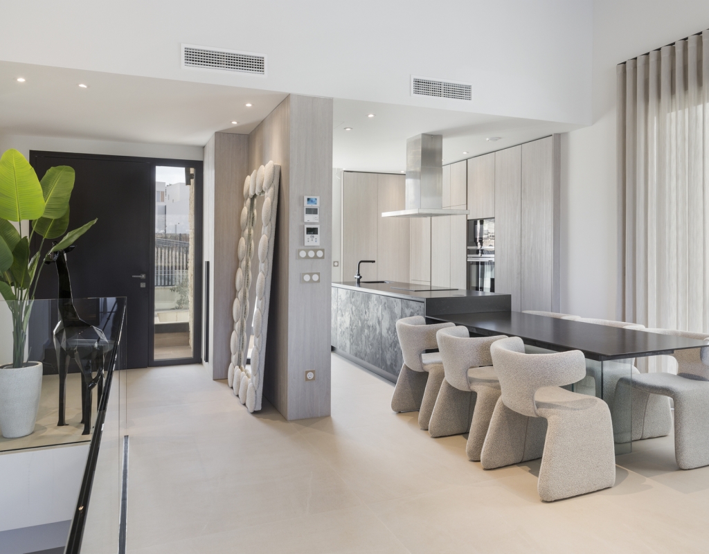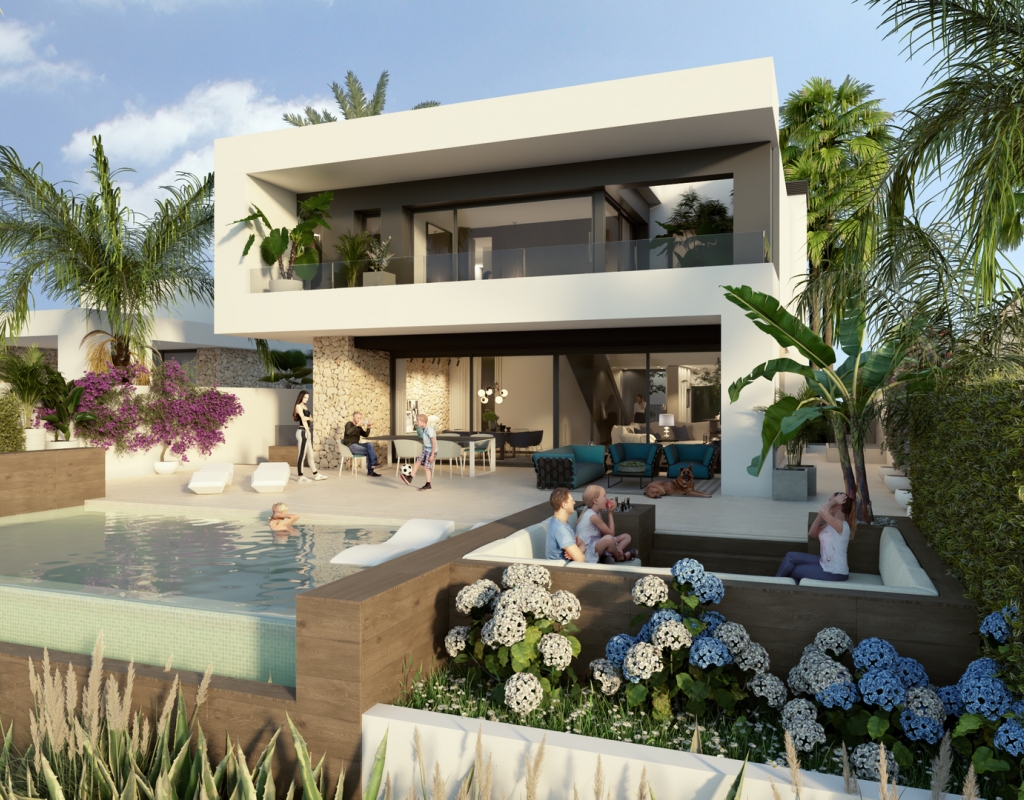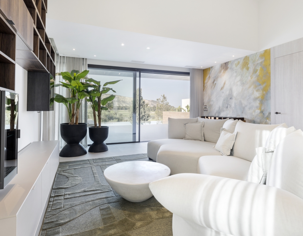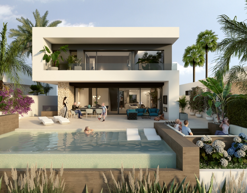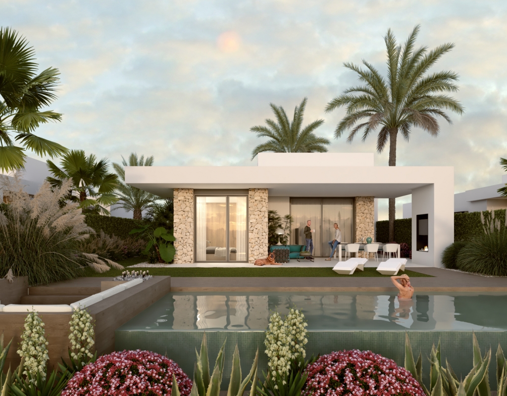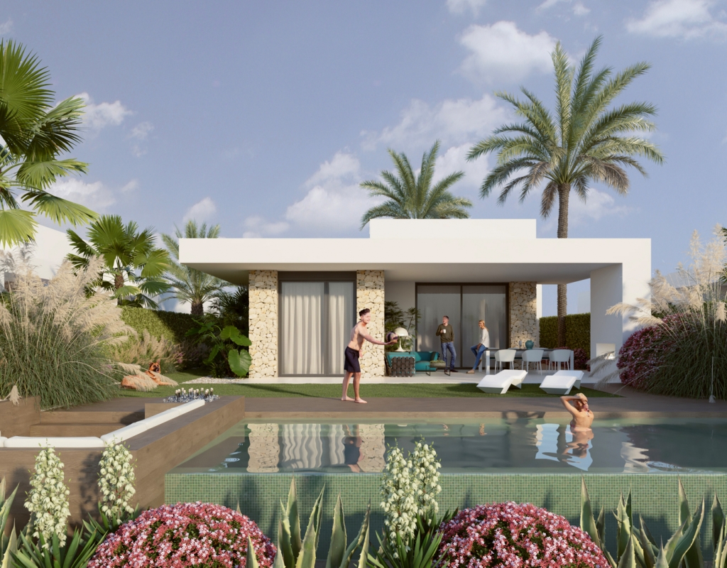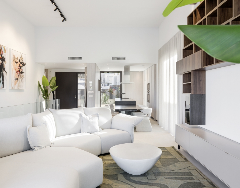 The interior of these villas in Algorfa is designed to offer a modern and comfortable space. The properties feature 3 bedrooms, providing adequate space for families or guests. The bathrooms, available in 2 or 3 options depending on the type, are equipped with underfloor heating, ensuring maximum comfort throughout the year. The inclusion of modern appliances and an advanced home automation system facilitates daily life, allowing efficient control of home functions. Built-in wardrobes offer practical and elegant storage, optimizing space usage in each room.