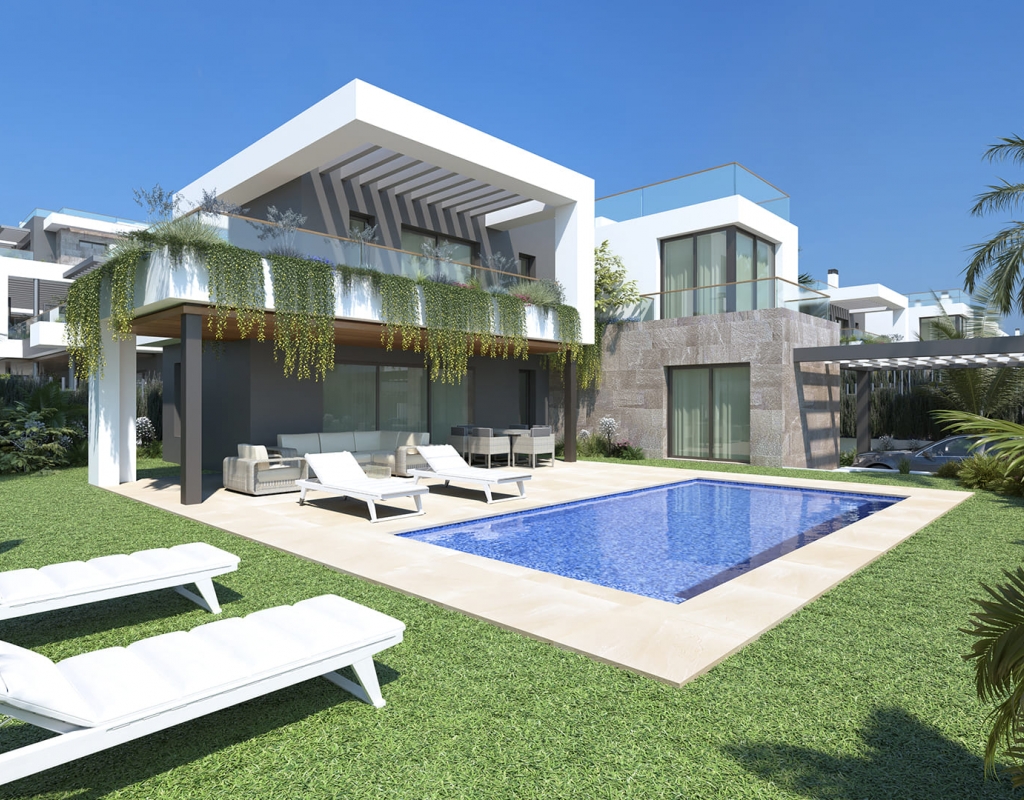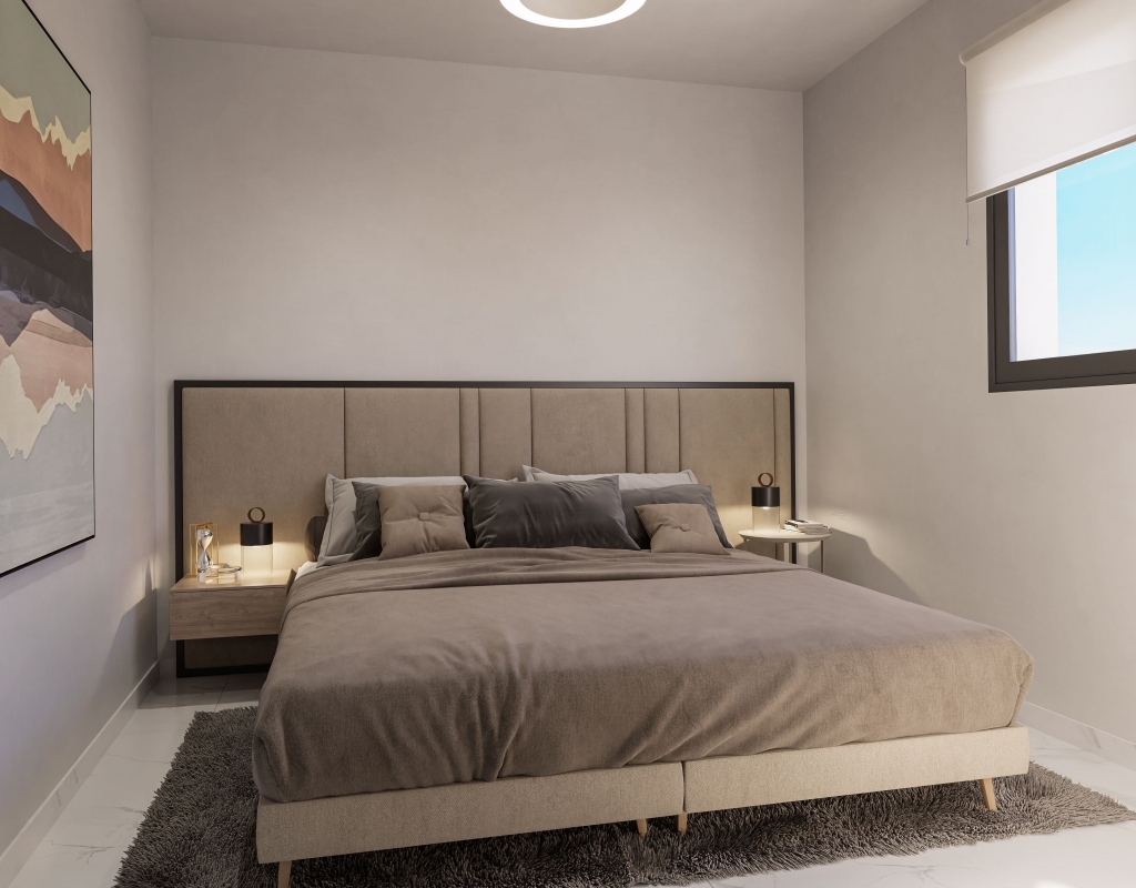 The exterior design of these townhouses in Torrevieja is intended to maximize enjoyment of the Mediterranean climate. Each property features a private garden, perfect for creating a personal oasis of tranquility. The spacious terraces offer an ideal space for outdoor relaxation, dining al fresco, or simply enjoying the surroundings. Additionally, the solarium is a privileged spot for sunbathing in privacy. The homes also include a private pool, providing a refreshing place to swim and relax on hot summer days. The presence of a pergola adds a touch of elegance and functionality, allowing you to enjoy the outdoors with shade and comfort. The jacuzzi is an additional luxury inviting total relaxation, turning the outdoor space into a true wellness retreat.
