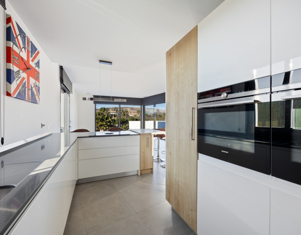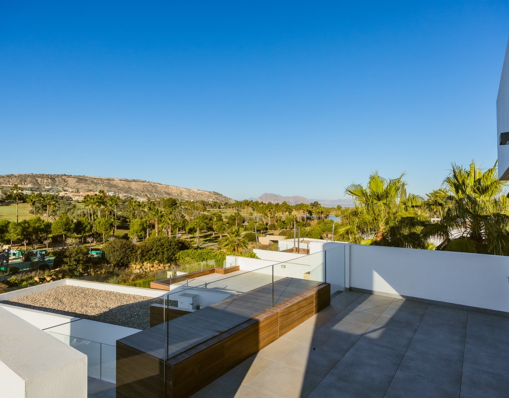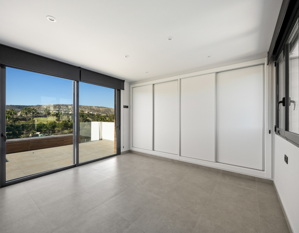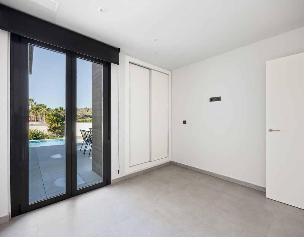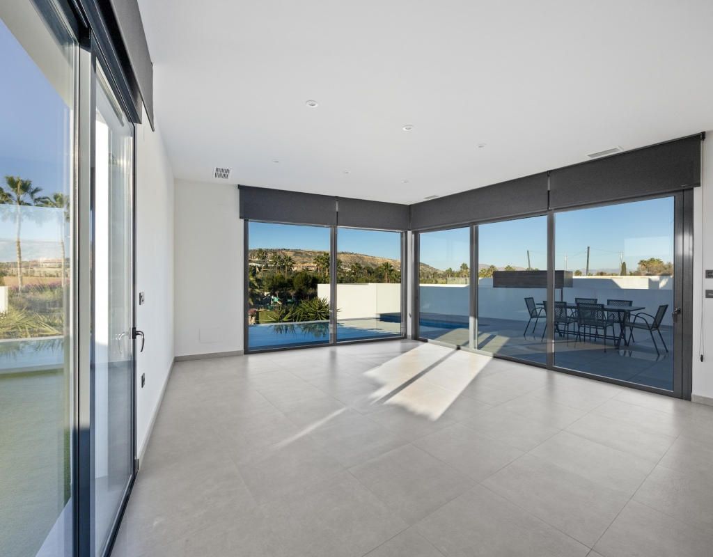 Stunning front line golf luxury modern villa at La Finca Golf with open fairway and mountain views. Set on a prime south-facing plot, this contemporary home offers privacy, light and exceptional indoor-outdoor living in one of the resort’s most sought-after locations. Stunning South-Facing Villa in prominent position to La Finca Golf with Exceptional Privacy, Infinity Pool & a 120m² Designer Underbuild. Positioned on one of the most privileged front line plots in all of La Finca Golf, this modern 4-bedroom villa combines architectural elegance, panoramic golf and mountain views, complete privacy, and a unique 120m² daylight-filled under build with spectacular pool windows — a feature rarely found anywhere in Spain. Just 30 minutes from Alicante Airport, this is the ideal base for year-round living, long golf weekends, or a premium holiday home. Property Overview 4 bedrooms 3 bathrooms + 1 guest WC 300 m² built area (including 120 m² under build) 440 m² private plot South-facing Front line golf position with uninterrupted views Infinity private pool with pool-window feature Large terraces + 65 m² solarium Parking area and dual access (front & back entrances) No community fees A Home Designed Around Light, Views and Privacy The villa enjoys one of the most private positions on La Finca — a rarity on the resort. No neighbouring properties overlook the pool, terraces or solarium, allowing for complete sunbathing privacy, even au naturel if desired. The elevated plot and open vistas provide a serene, exclusive atmosphere from sunrise to sunset. Main Living Area The ground floor is a bright, open-plan space framed by floor-to-ceiling glass, bringing views and sunlight into every corner. Spacious living room with panoramic views High ceilings for an airy architectural feel Direct access to the pool and terraces Seamless indoor–outdoor flow The Siemens-equipped kitchen includes: Siemens refrigerator Siemens dishwasher Dual Siemens ovens AEG induction hob with integrated extractor Abundant worktop and storage space Breakfast bar island Bedrooms and Bathrooms The villa offers four well-appointed bedrooms, each with large fitted wardrobes and beautiful natural light. Main level Three bedrooms, one with en-suite with bathtub Direct terrace and pool access from two bedrooms Additional family shower room Upper level Master suite with private bathroom Sliding doors to a spectacular wrap-around solarium Far-reaching views over the golf course and surrounding mountains 120 m² Underbuild — A Rare, Versatile Living Space This remarkable level is unlike anything else on La Finca: Flooded with natural light Show-stopping glass windows looking directly into the pool Guest WC + full laundry area (Siemens washing machine & Siemens dryer) This space can be transformed into: Cinema room Gym Games & bar lounge Additional living quarters Office + studio Wellness spa area The cool summer temperatures make it ideal for year-round use. Outdoor Living Infinity pool with underwater windows Large sun terraces with unbeatable views Beautiful low-maintenance landscaping South orientation for maximum sun exposure Elevated plot ensuring privacy 65 m² rooftop solarium for sunsets, yoga, dining, or a jacuzzi Additional Features Mitsubishi Electric air conditioning (efficient heating & cooling) Motion-detection alarm system High-speed fiber optic internet Electric shutters Front and rear access ideal for guests or deliveries Short walk to restaurants, bars, shops and services Access to La Finca’s spa, golf academy, padel and tennis club, and fitness facilities Lifestyle and Location La Finca Golf is one of Spain’s most highly regarded golf resorts, ranked among the Top 100 Golf Resorts in Europe. The villa is within minutes of: Renowned golf course with academy Tennis & padel club Luxury hotel & spa Gyms, hiking routes & mountain biking trails Excellent restaurants and entertainment Award-winning beaches (20 minutes) A rare combination of luxury, architecture, natural light, privacy, and an unbeatable front line setting. Viewing Highly Recommended Homes with this level of privacy, orientation and design are rarely available. Viewings are by appointment only.