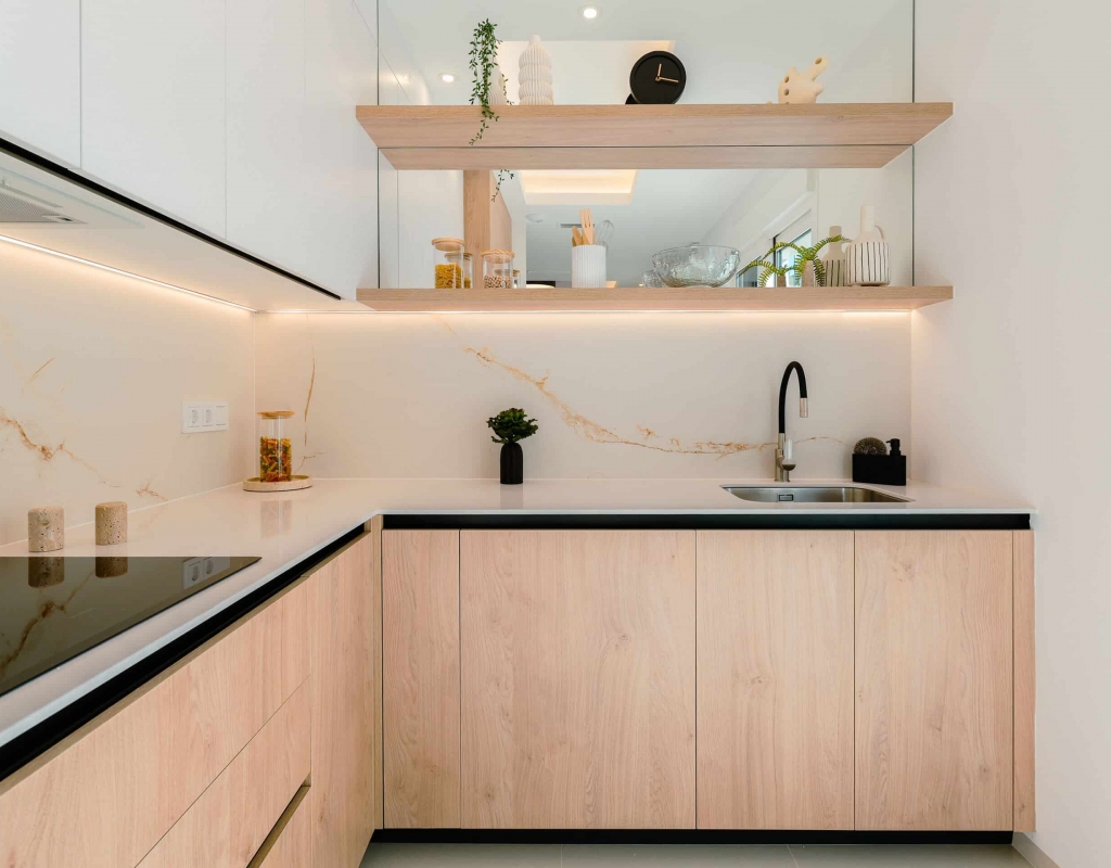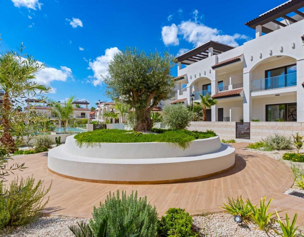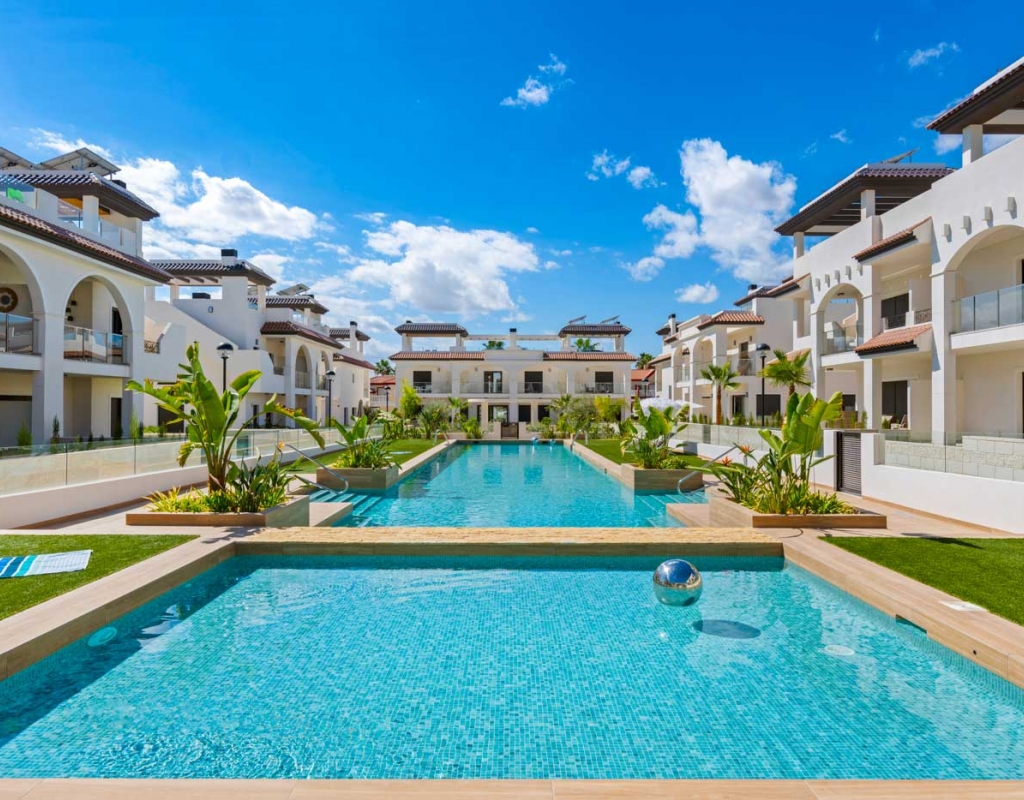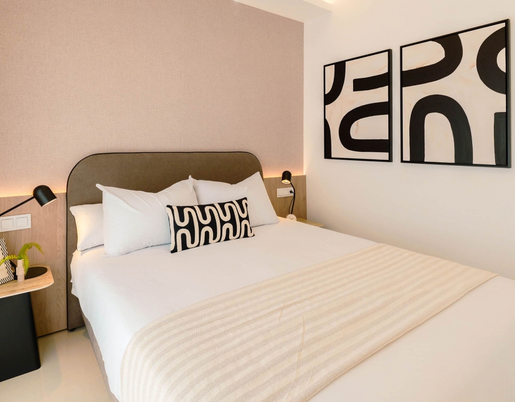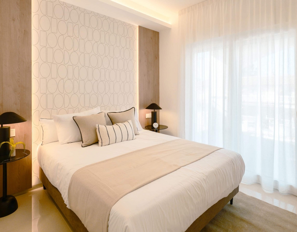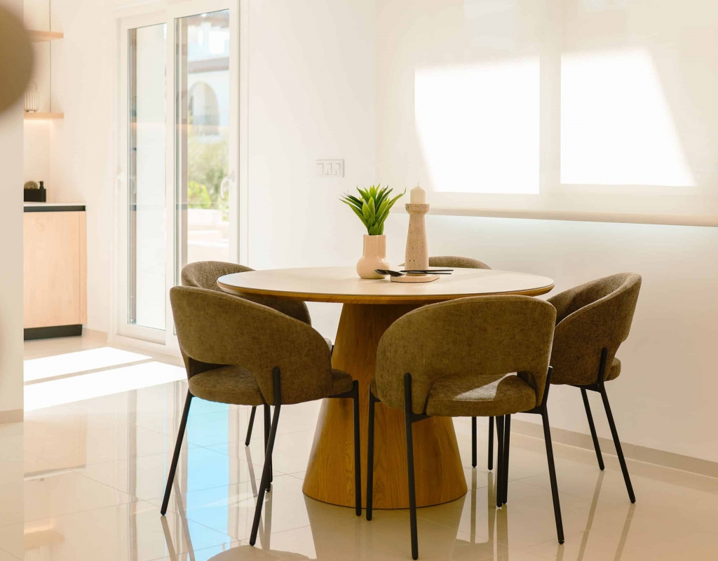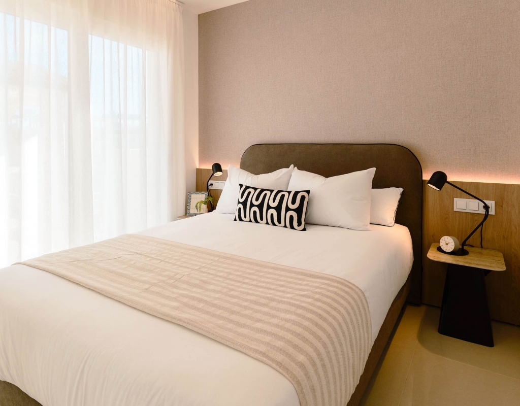 The exteriors of these homes have been designed to maximize enjoyment of the Mediterranean climate. Each property features a private garden, perfect for relaxing or enjoying outdoor activities. The presence of a private pool adds a touch of luxury, allowing for refreshing dips on the hottest days. Additionally, the homes have a terrace and a solarium, offering multiple spaces to relax or socialize outdoors. The inclusion of a pergola provides shade and style, creating a welcoming and elegant outdoor environment.