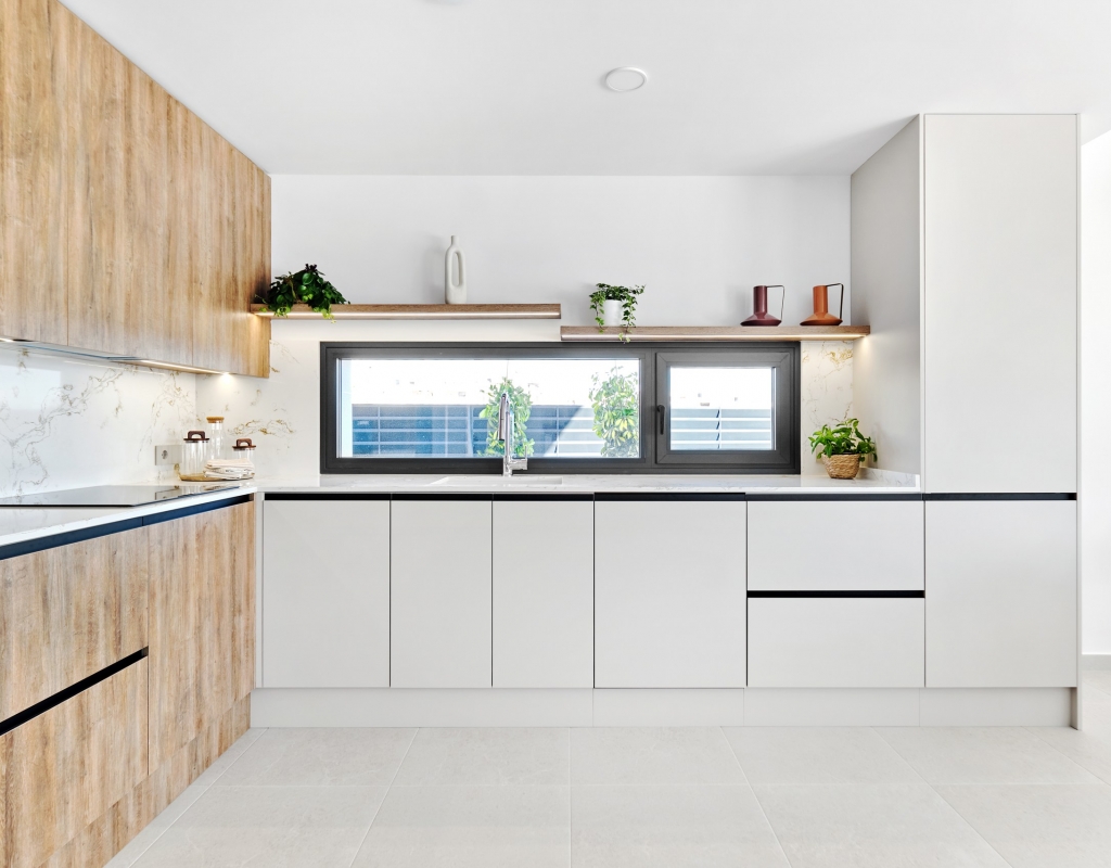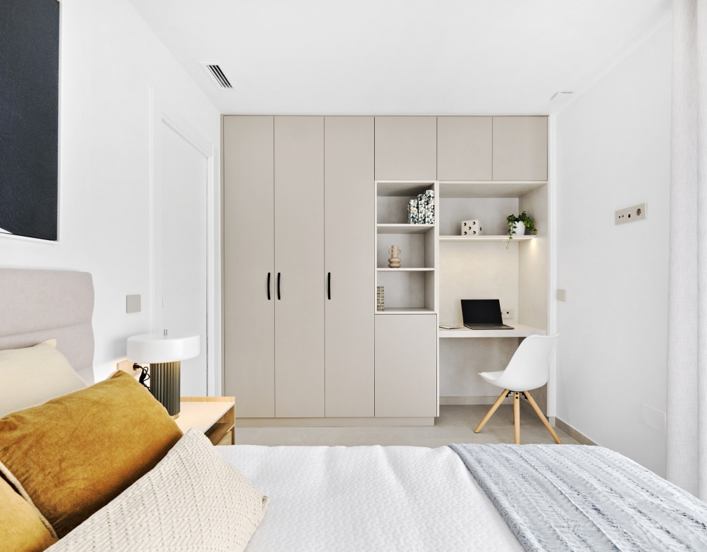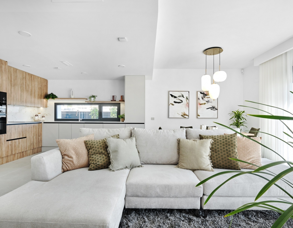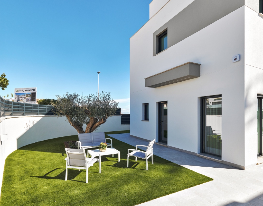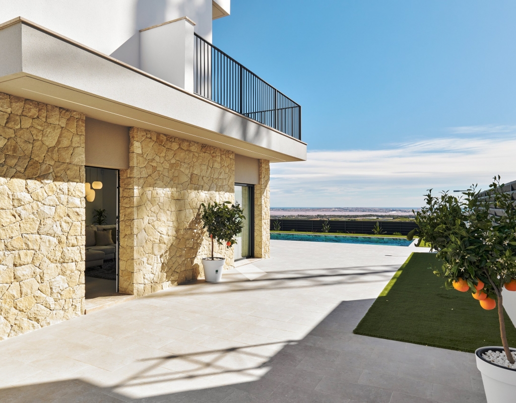 The exterior design of these detached homes in San Miguel de Salinas is intended to enjoy the Mediterranean climate. Each property features a private pool, perfect for cooling off during warm summer days. Additionally, the terraces offer an ideal space for outdoor relaxation or al fresco dining with sea views. The option of a solarium allows residents to make the most of the sun year-round, creating an additional space for leisure and relaxation.